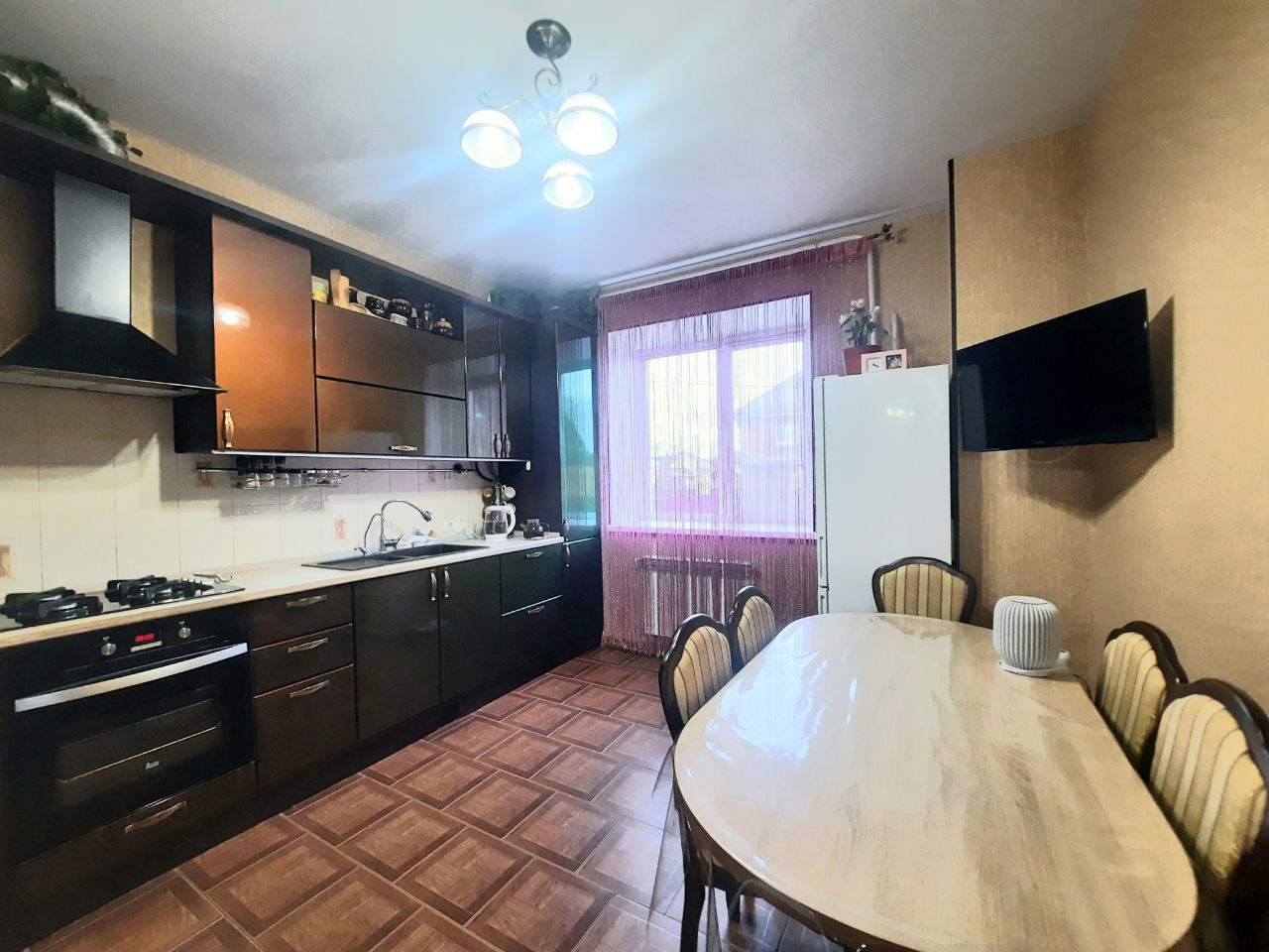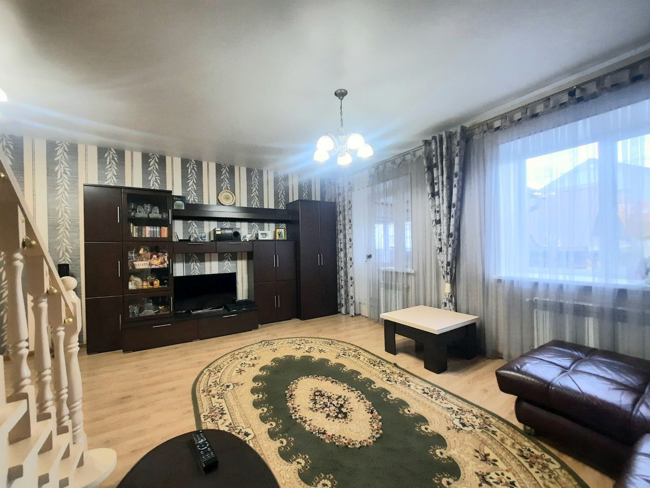 В доме остается практически вся мебель. Гостиная: стенка, диван, кондиционер. Кухня: кухонный гарнитур: изготовлен из качественных и дорогих материалов - дизайн "Хамелеон" при дневном освещении зеленый, а при искусственном коричневый. Варочная панель, духовай шкаф. Спальни: шкафы, кровати.