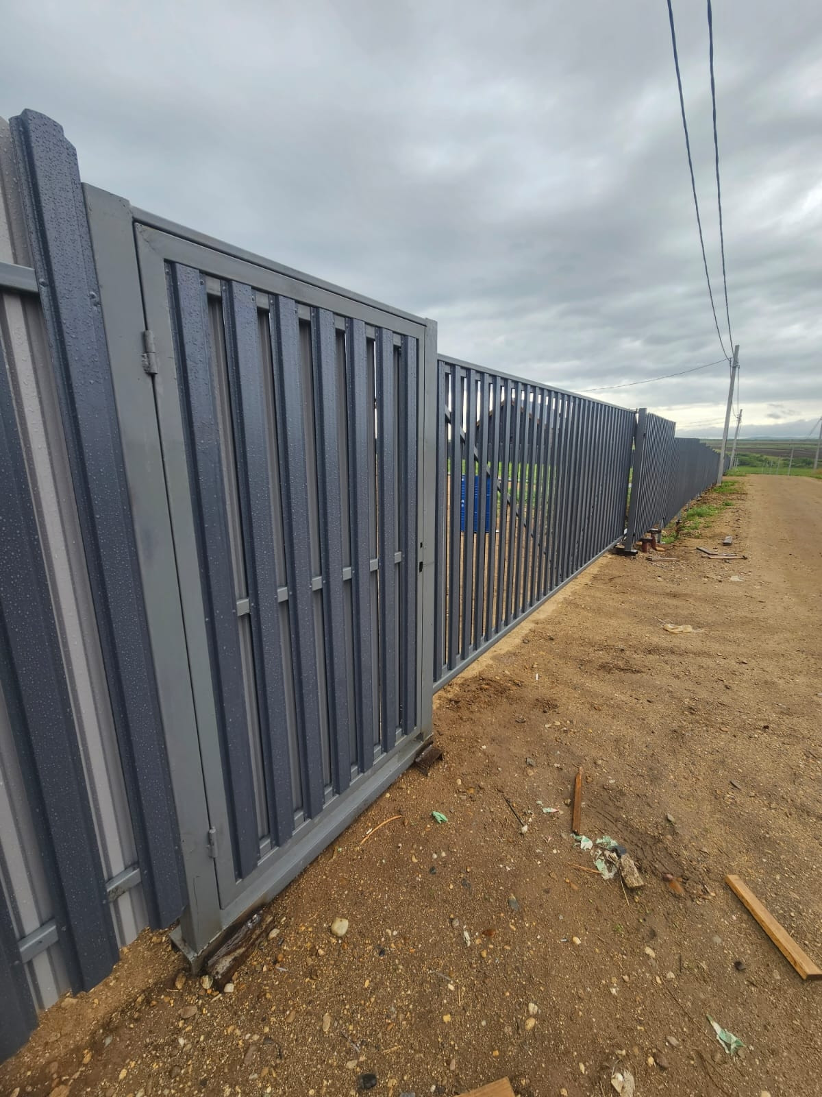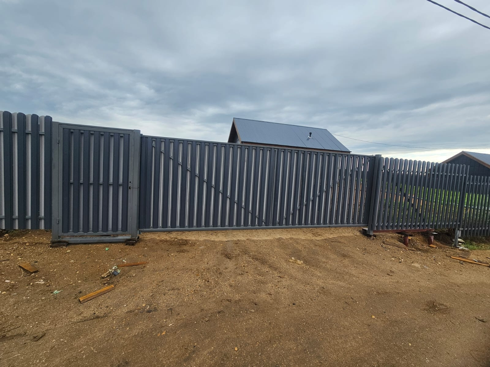 Забор из евроштакетника. Ворота откатные.