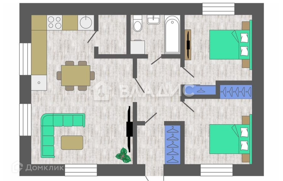 Большая кухня гостинная + 2 мастер спальни