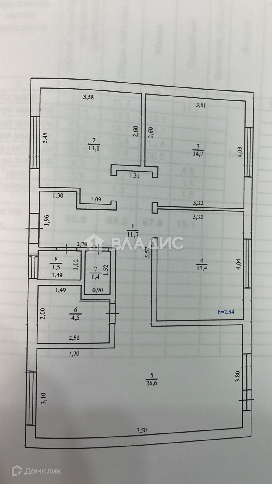 Высота потолков 2.8 м