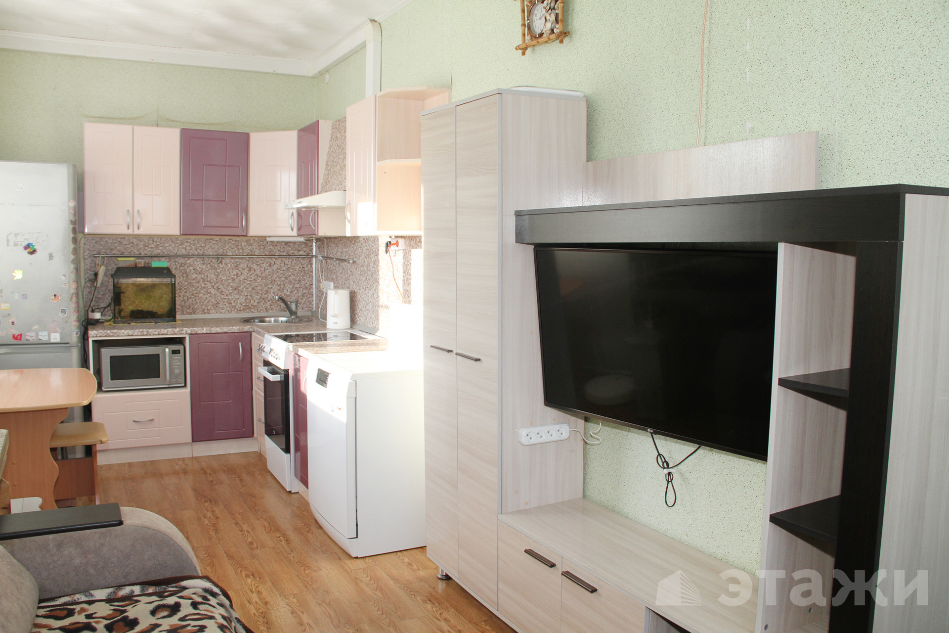 Сделан ремонт в детской комнате, на кухне. Останется кухонный гарнитур.