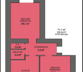 Общая площадь: 71.8 м2
