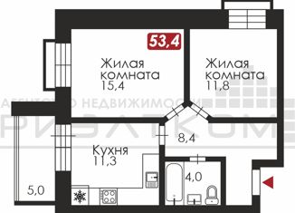 Общая площадь: 53.4 м2