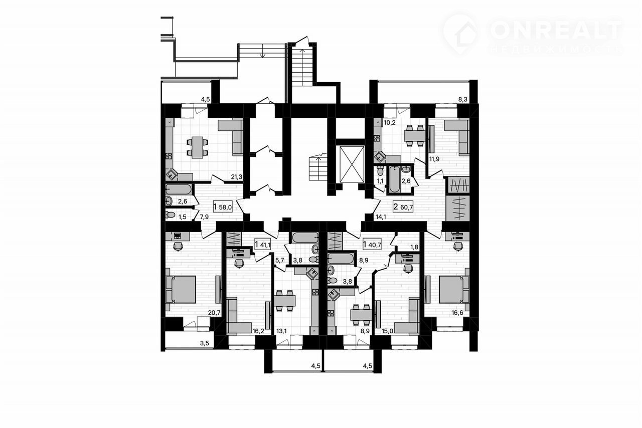 Общая площадь 41.1 м2