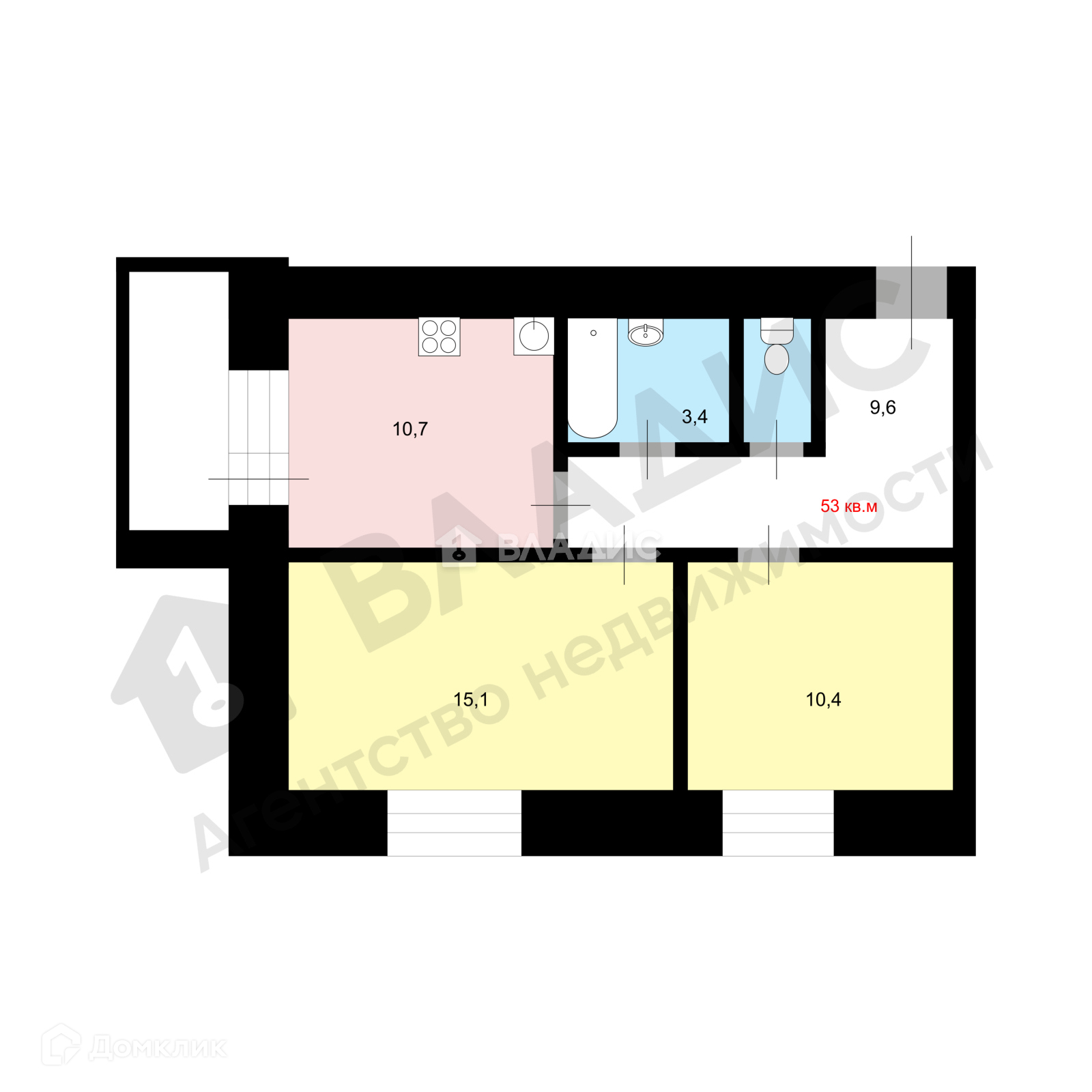 Общая площадь 53 м2