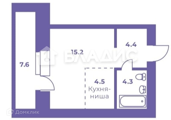 АН Владис предлагает просторную студию на седьмом этаже нового дома комфорт класса.