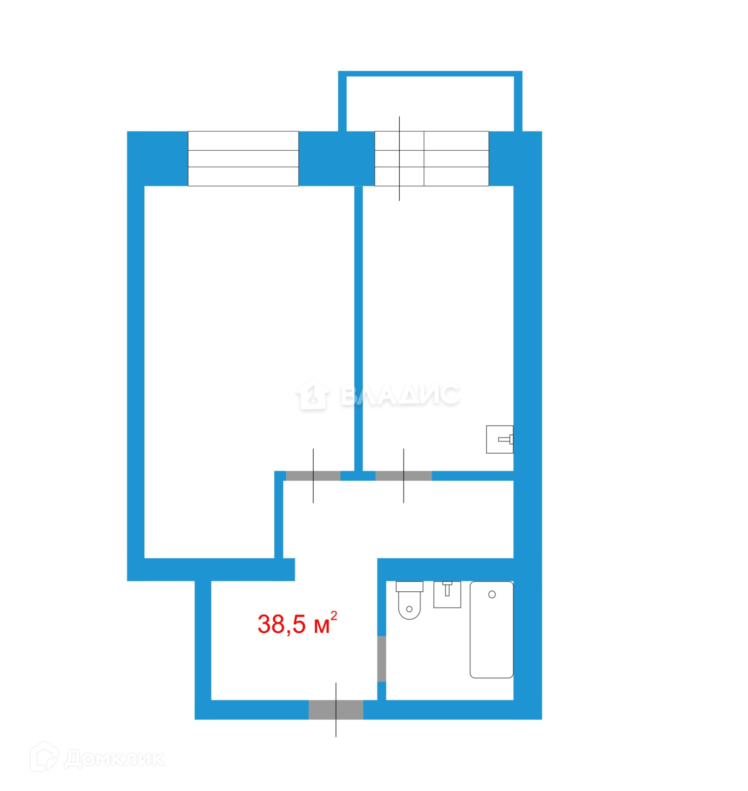 Общая площадь 38.5 м2