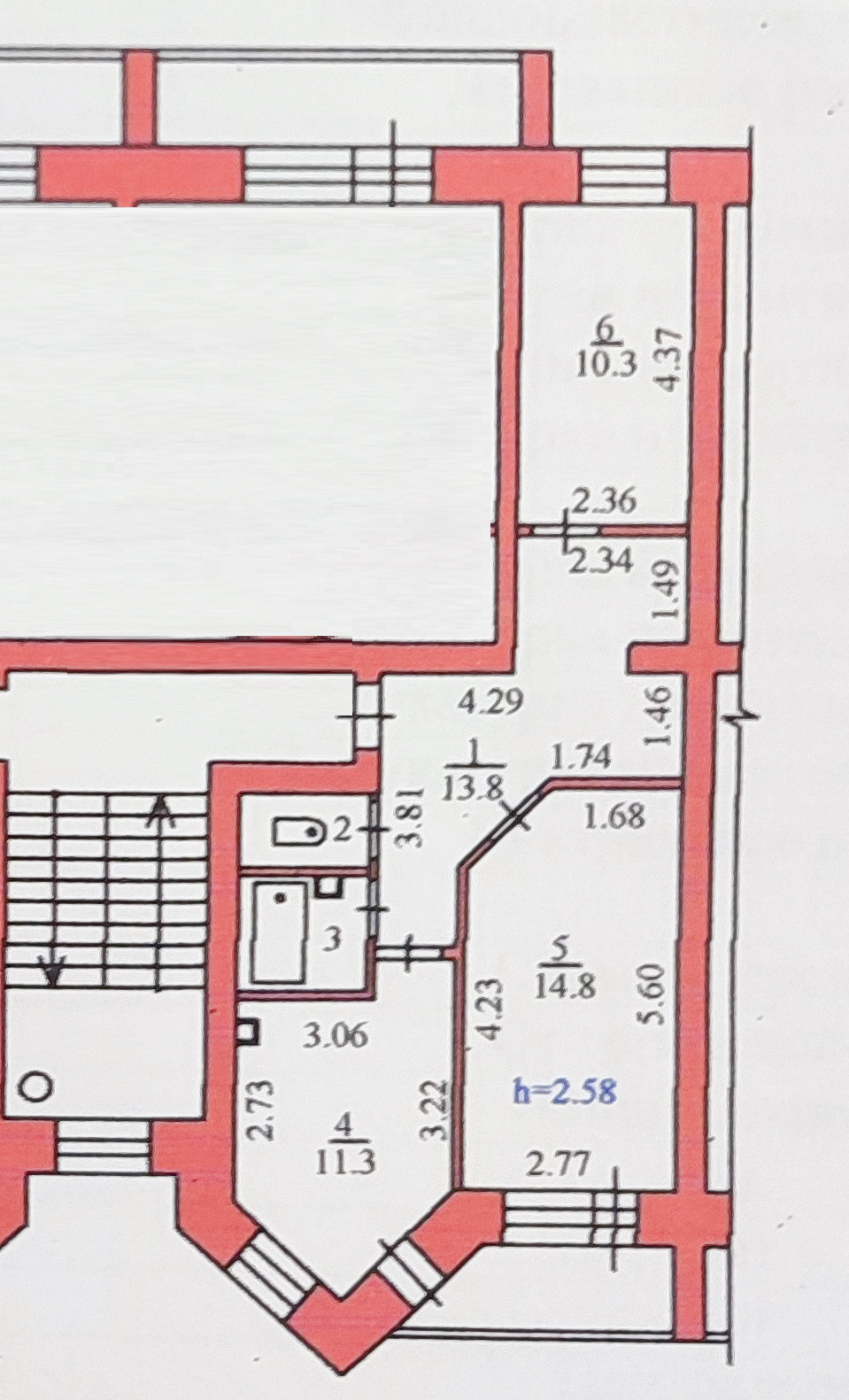 Общая площадь 54.3 м2