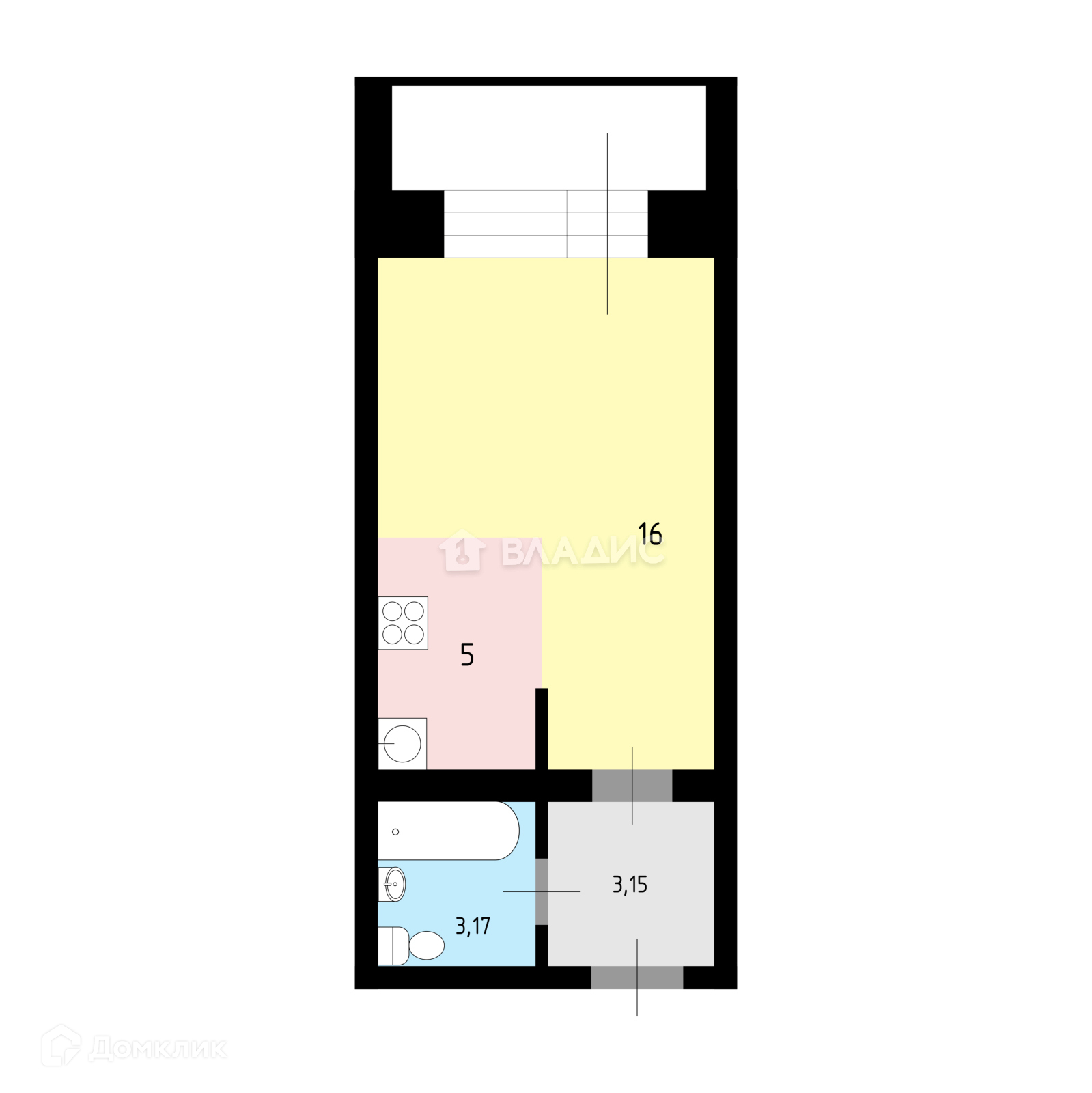 Общая площадь 28.7 м2