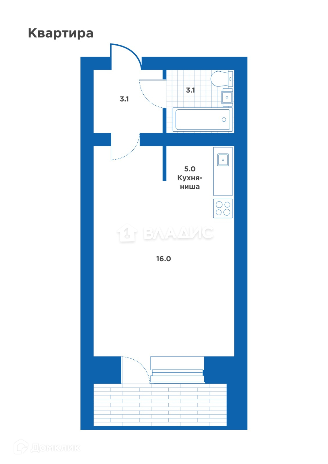 Общая площадь 28 м2