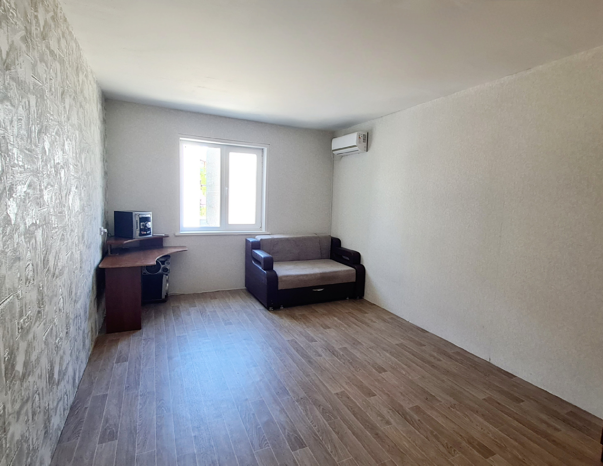 Квартира с удобной планировкой, просторная жилая комната, сделан косметический ремонт, установлен водонагреватель и кондиционер, заст. лоджия.