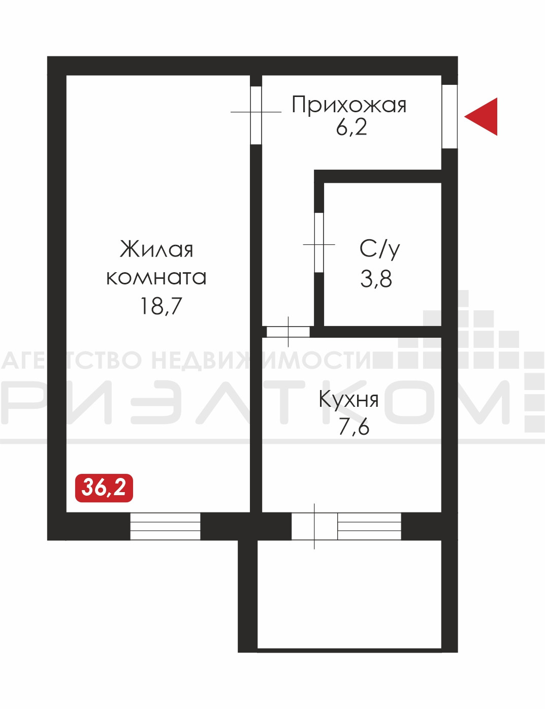 Общая площадь 36.2 м2