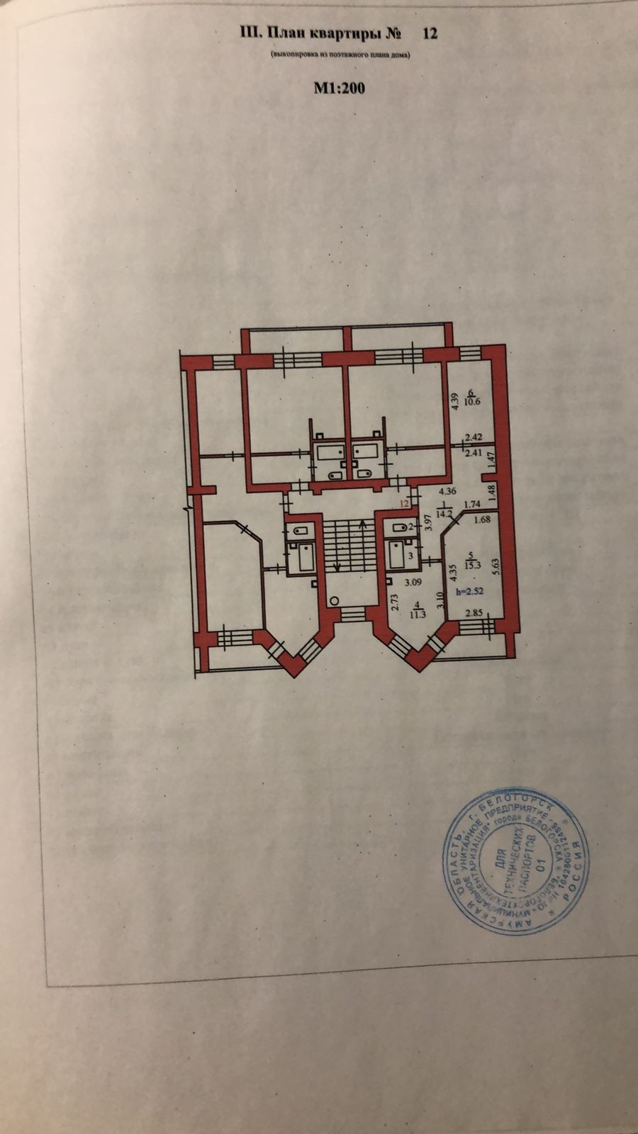 Высота потолков 2.52 м