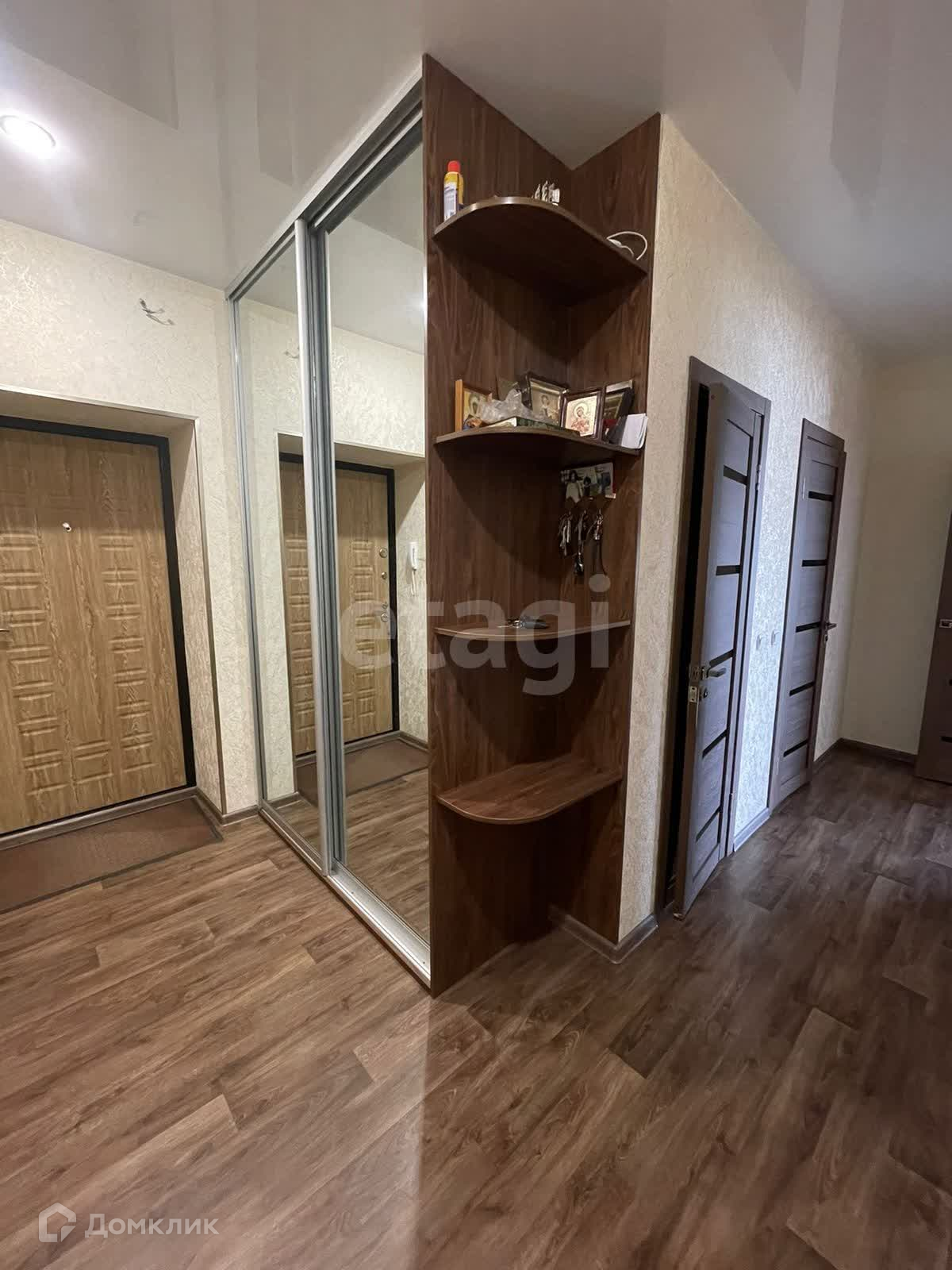 В квартире имеется ниша для хранения вещей со встроенным шкафом и полками.