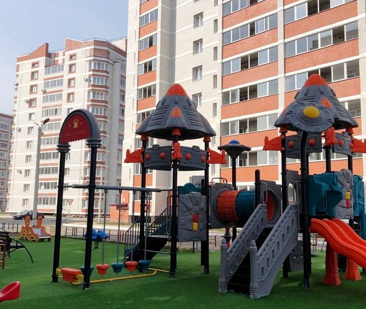 Благоустроенные дворы с современными детскими площадками и парковками.
