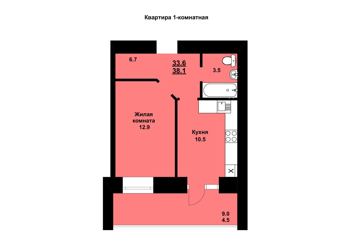 Общая площадь 38.1 м2