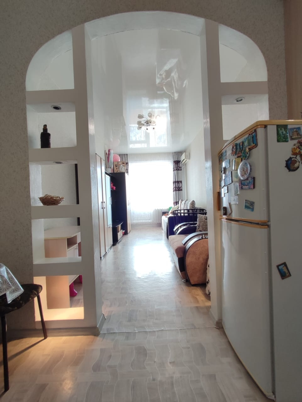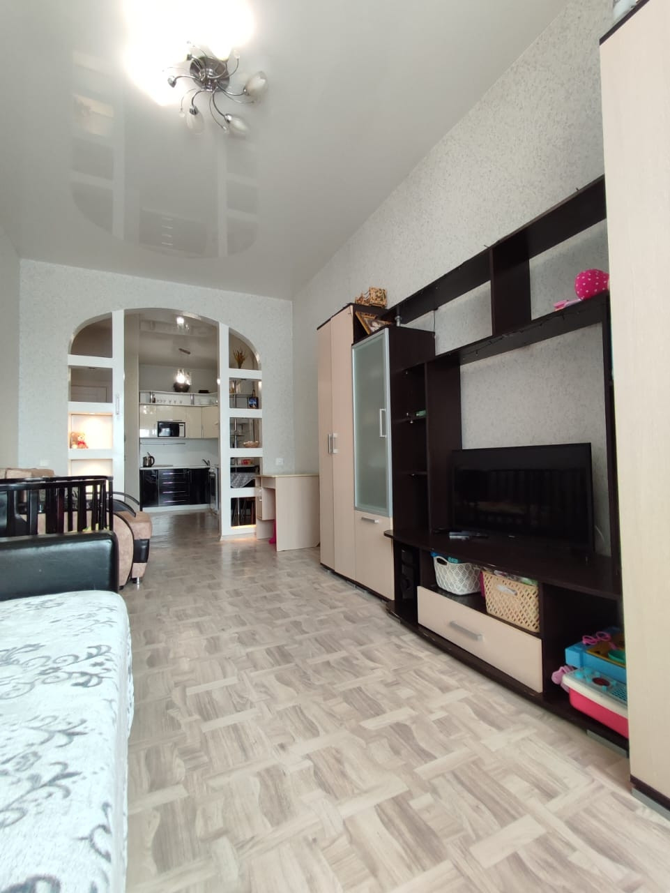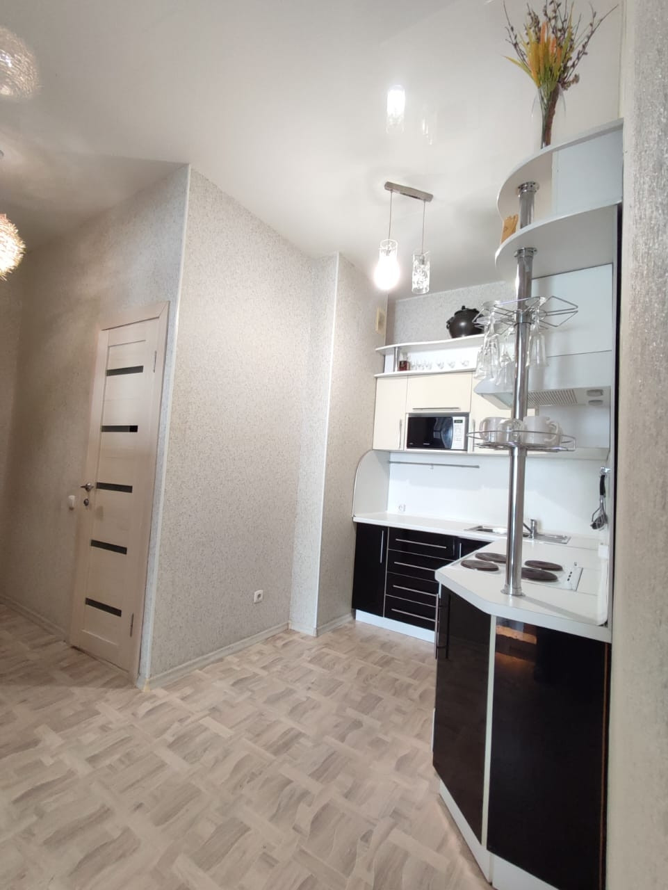 при продаже остаётся практически вся мебель, необходимая для проживания: встроенная кухня, электроплита, микроволновая печь, 2 шкафа-купе, кондиционер, горка ТВ, диван, водонагреватель, на случай отключения горячей воды.