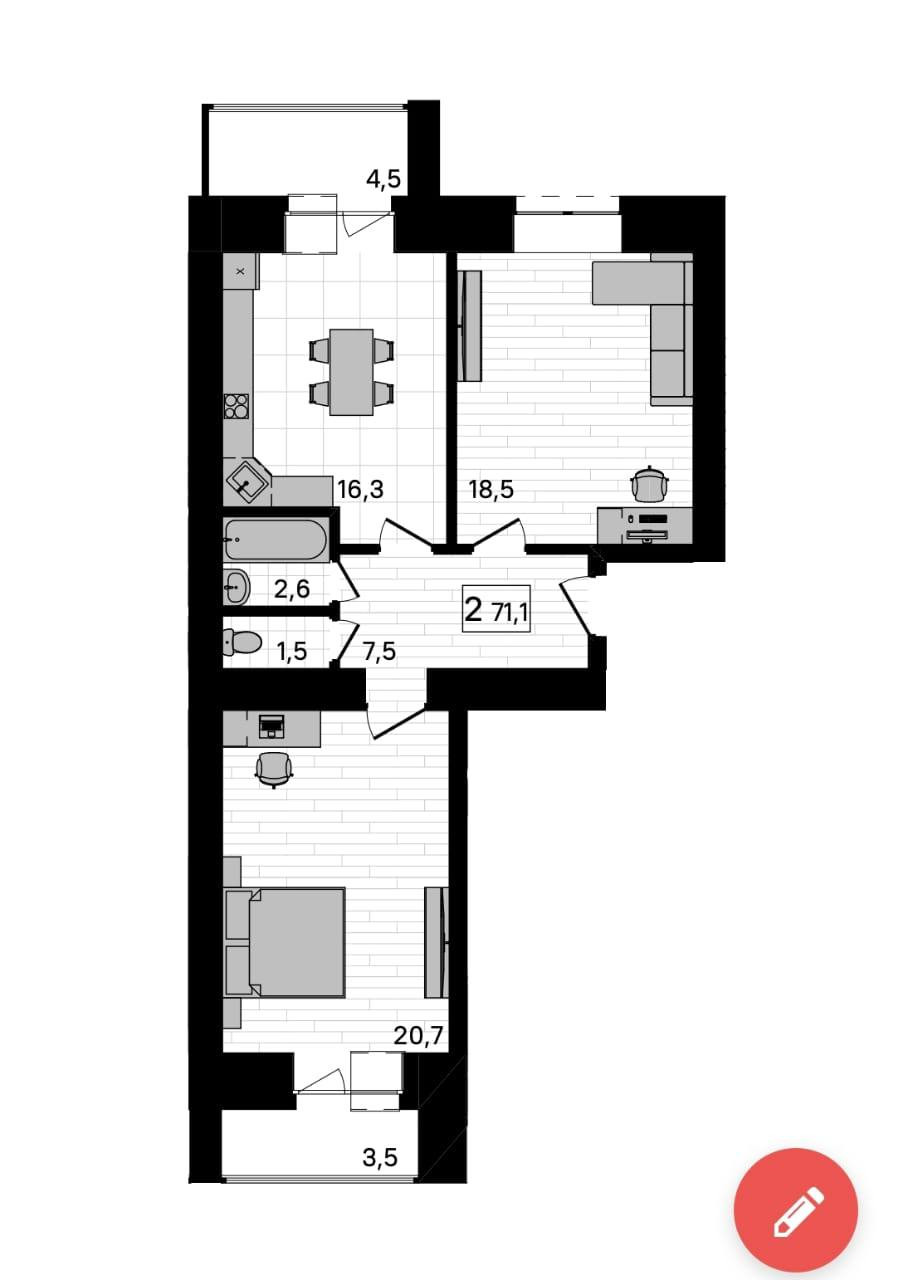 Общая площадь 71 м2