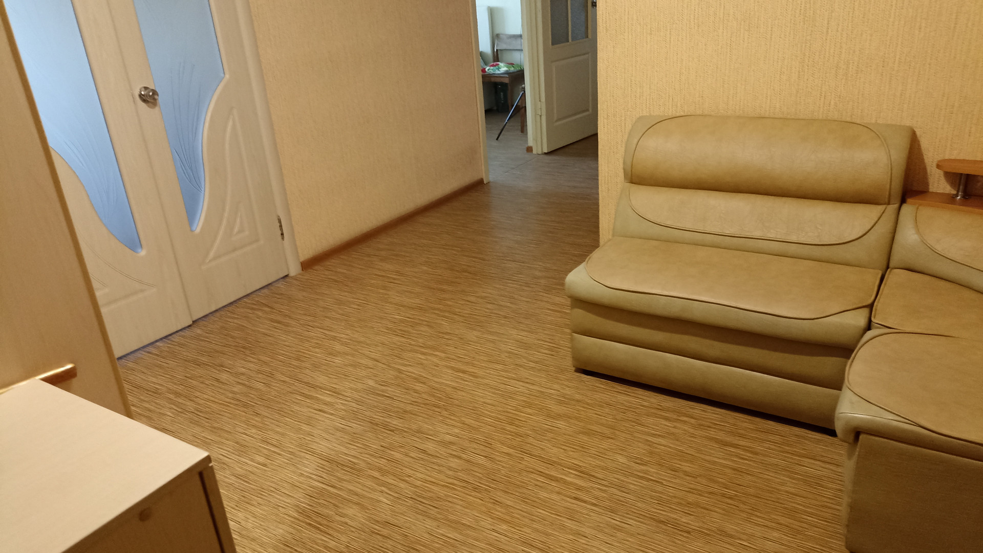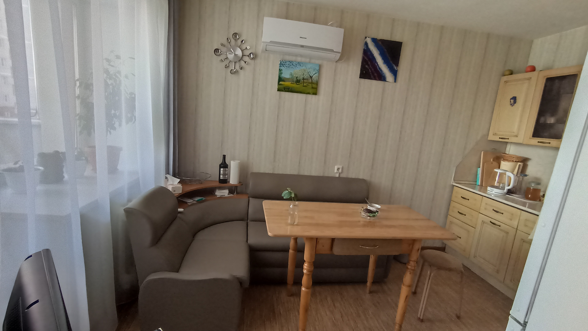 Окна квартиры выходят на юг, очень светлая и просторная квартира. Большая прихожая с диваном и встроенным шкафом.