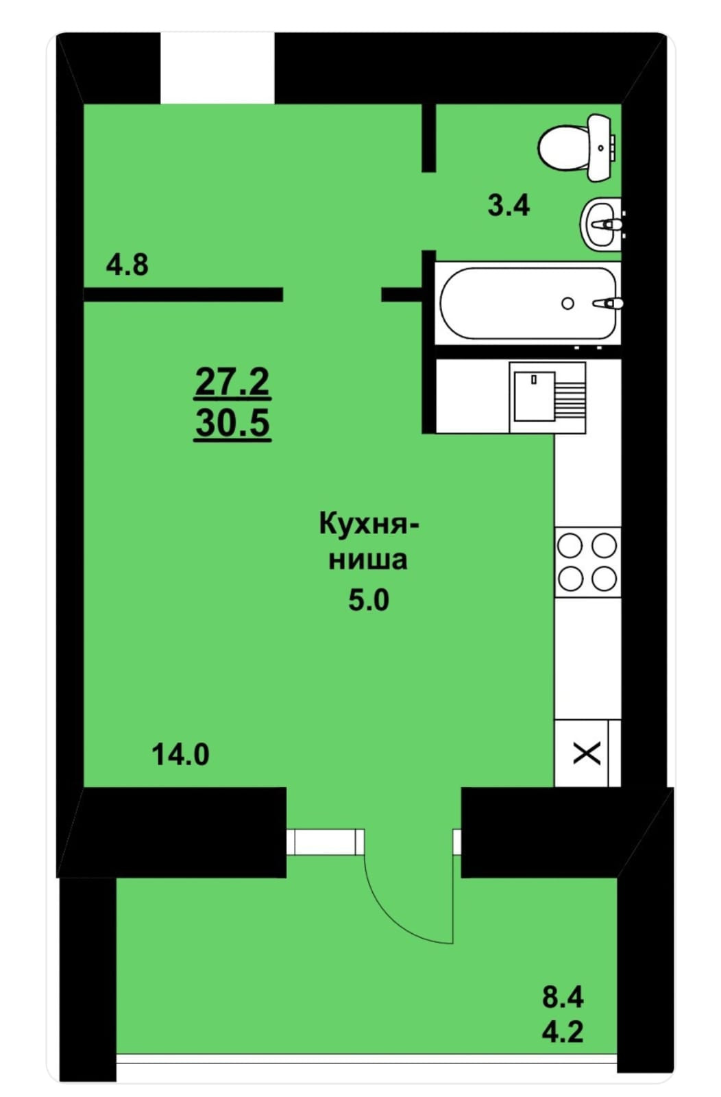 Общая площадь 24.6 м2
