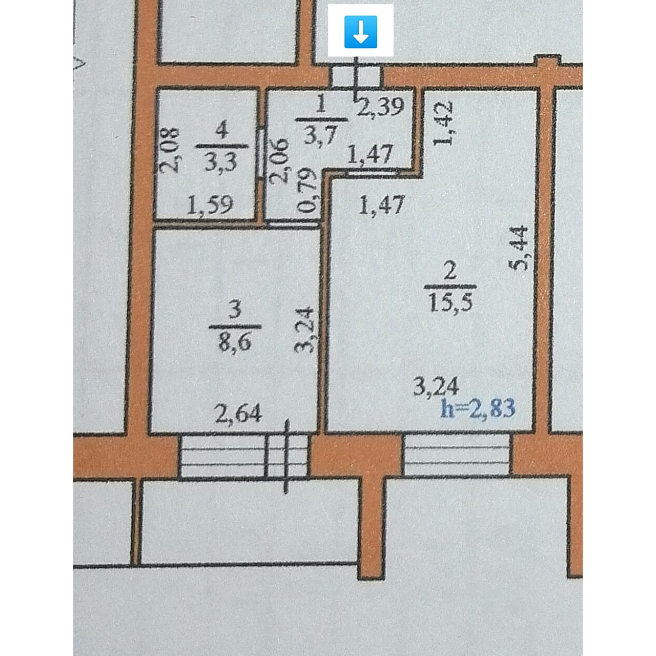 1-комнатная квартира, 35.2 м2, этаж 1 / 3, на продажу в селе Чигири, Центральная улица, 35/2
