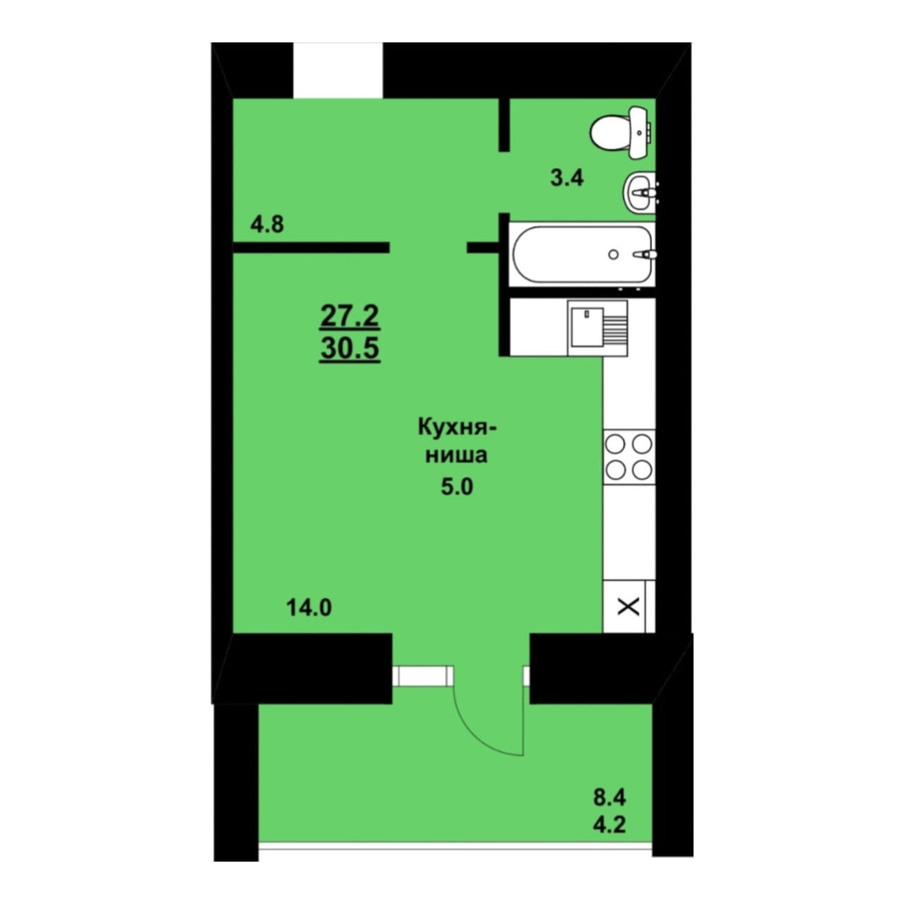 Общая площадь 30.5 м2