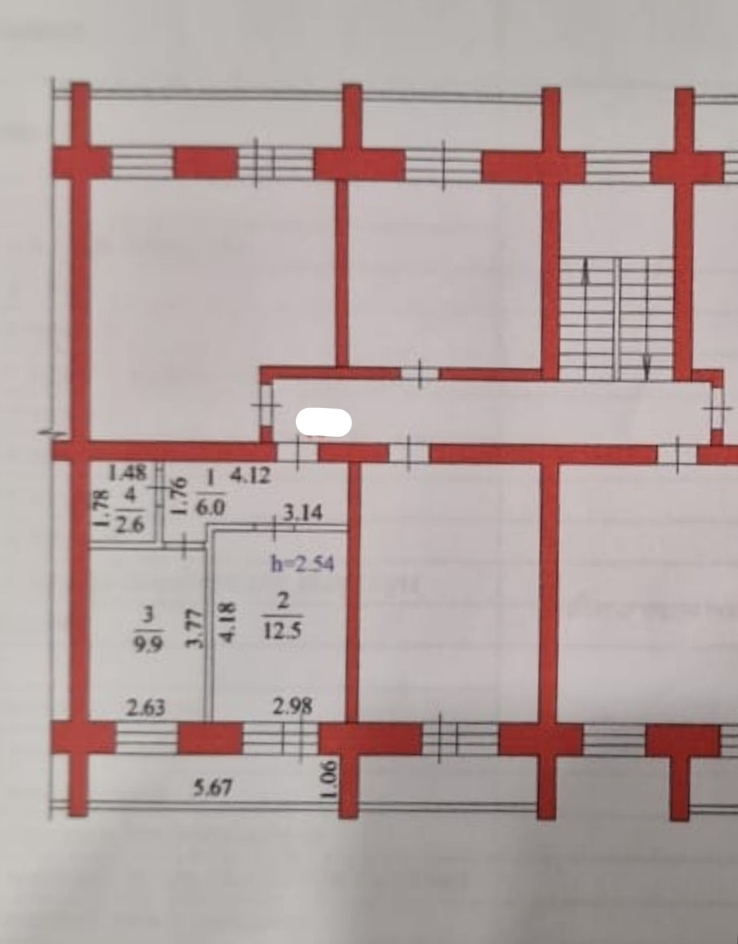 Высота потолков 2.54 м