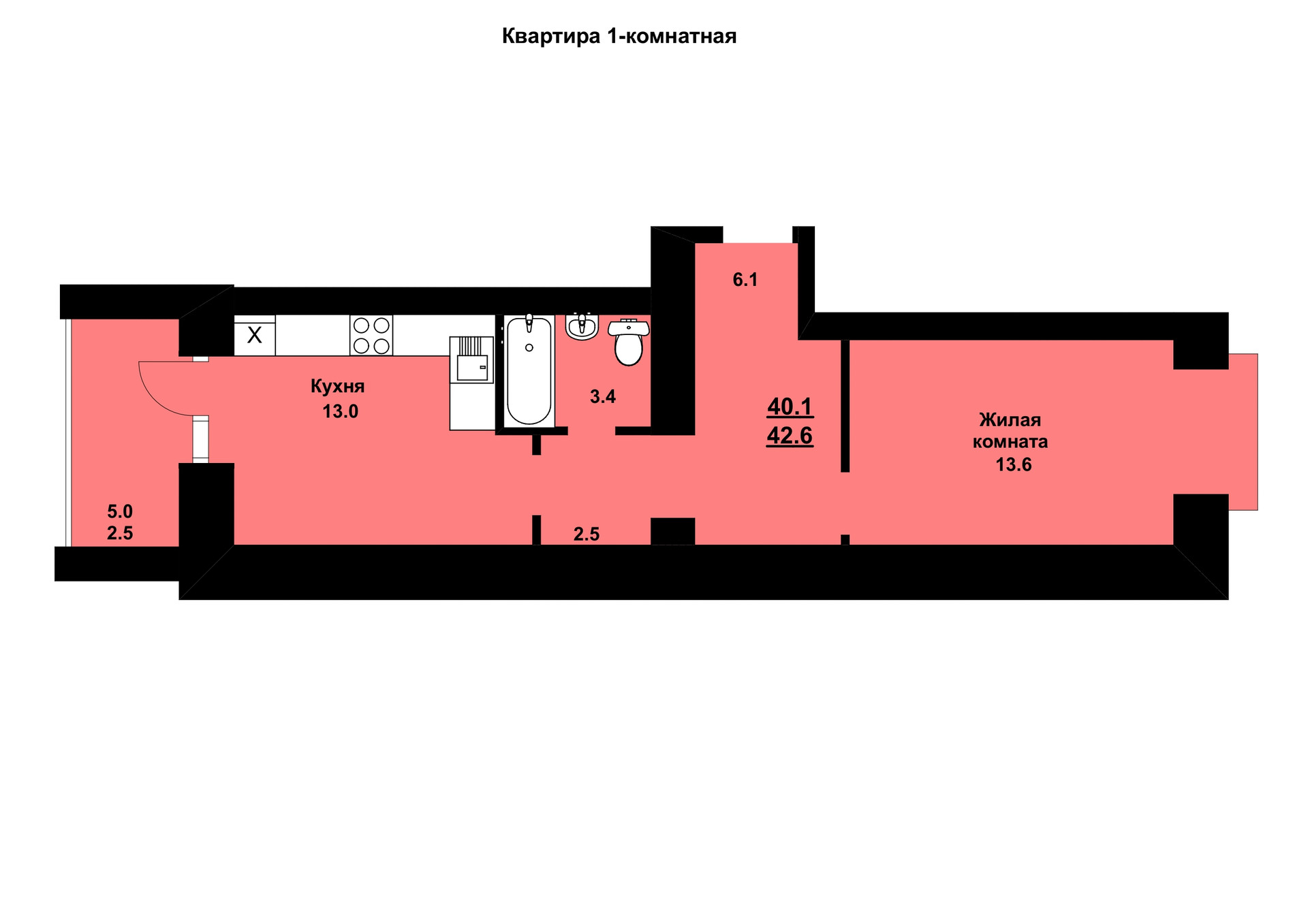 Общая площадь 40.3 м2