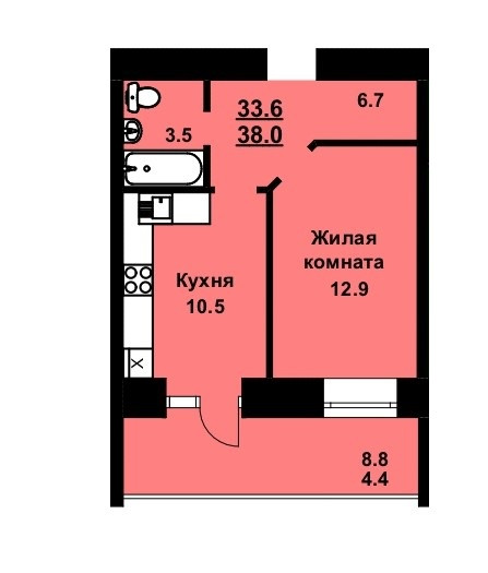Общая площадь 39 м2