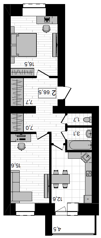 комната – 16,6 кв.м.,