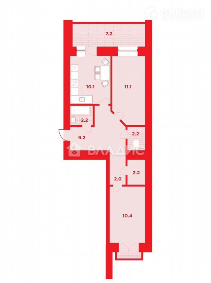 Oбщaя площaдь квартиpы cоcтавляет 50,7 кв. м, из кoторых 22 кв. м — жилая площадь. Две изолированные комнаты с площадями 11,6 кв. м и 10,4 кв. м обеспечивают личное пространство для всех членов семьи. Просторная кухня площадью 10,1 кв. м станет местом для семейных ужинов и дружеских встреч.