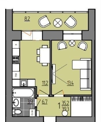 Общая площадь 39.3 м2