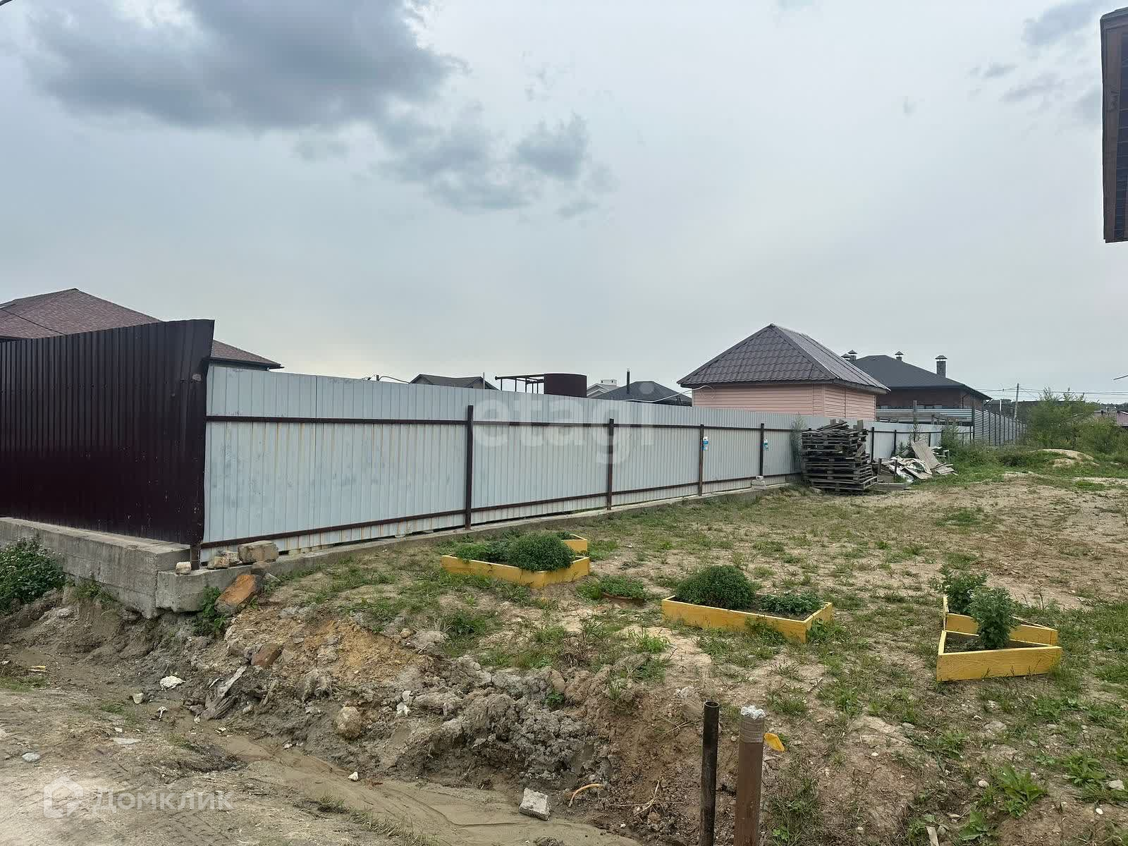 Участок огорожен забором, имеется фундамент дом под дом площадью 300 квадратных метров, можно возвести дом с гаражом.