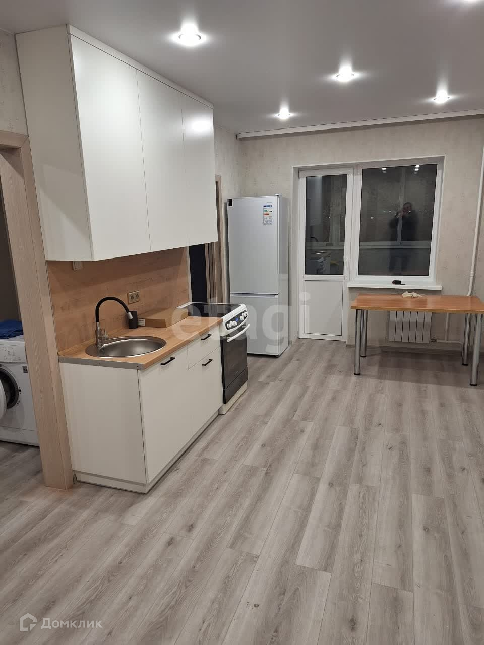 Квартира с новым ремонтом, в ближайшее время будет установлен шкаф(где стоит стиральная машинка) и будет сделана прихожая. Спальные места пока отсутствуют.