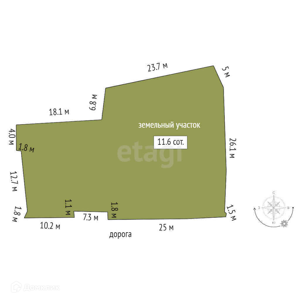 Площадь участка 11.6 сот.