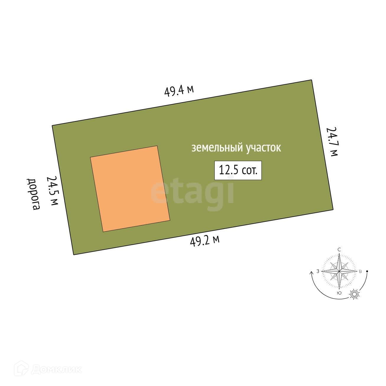 Площадь участка 12.5 сот.