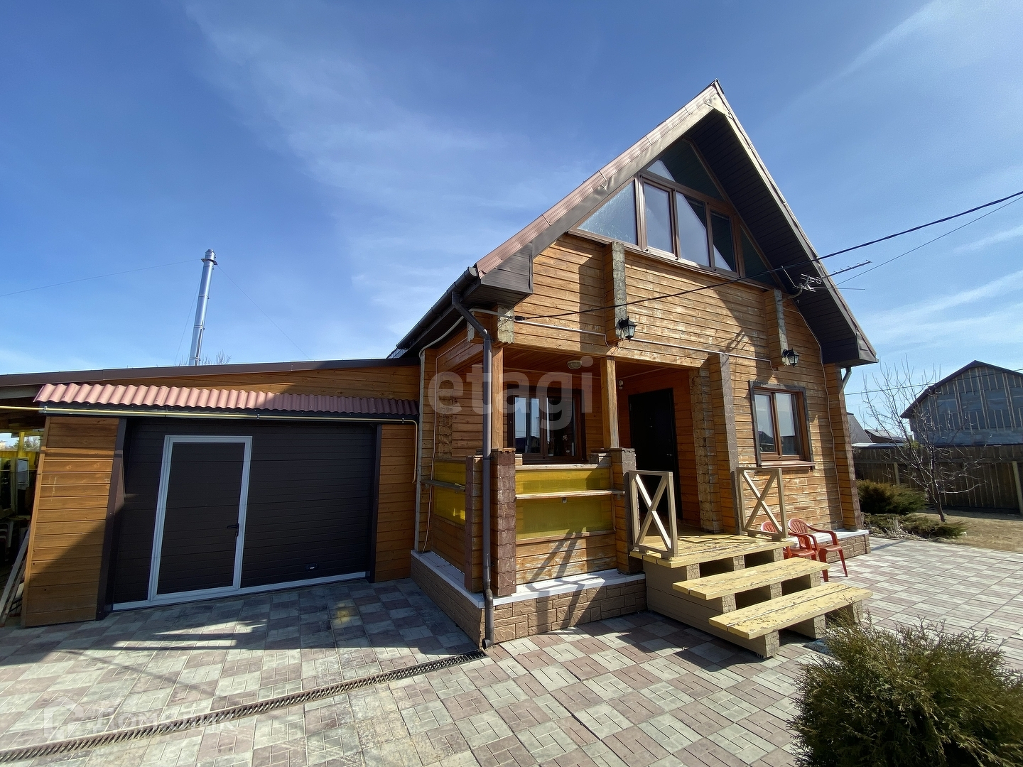 В доме три котла: газовый, электрический и твердотопливный. Бонусом к дому идет большой гараж с автоматическими воротами.
