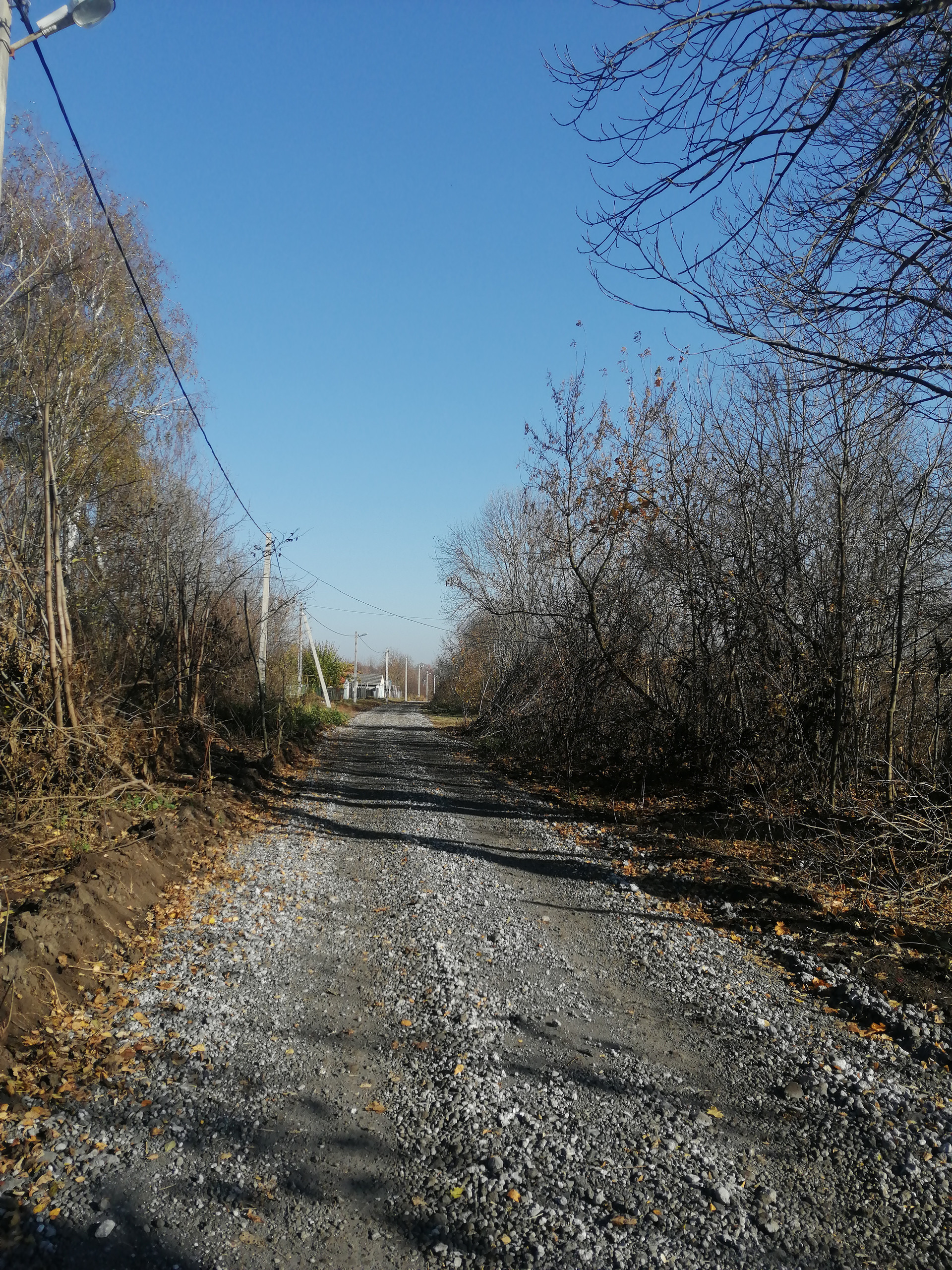 Центральные дороги асфальтированы, по улице насыпан гравий.