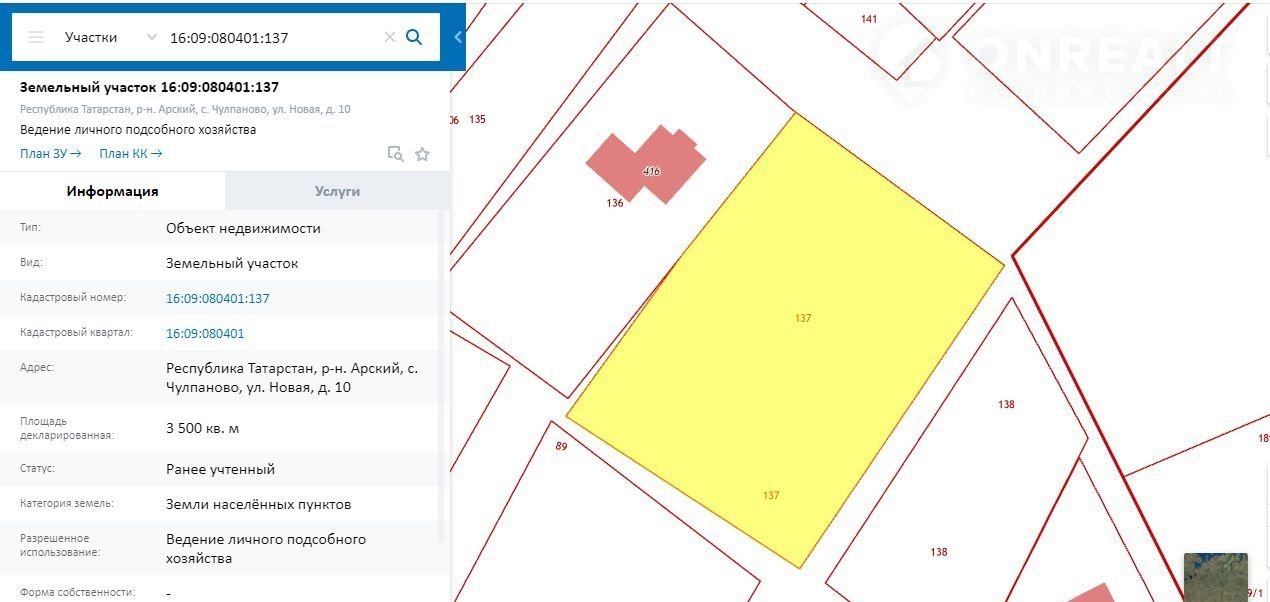 Кaдacтровый номер 16:09:080401:137