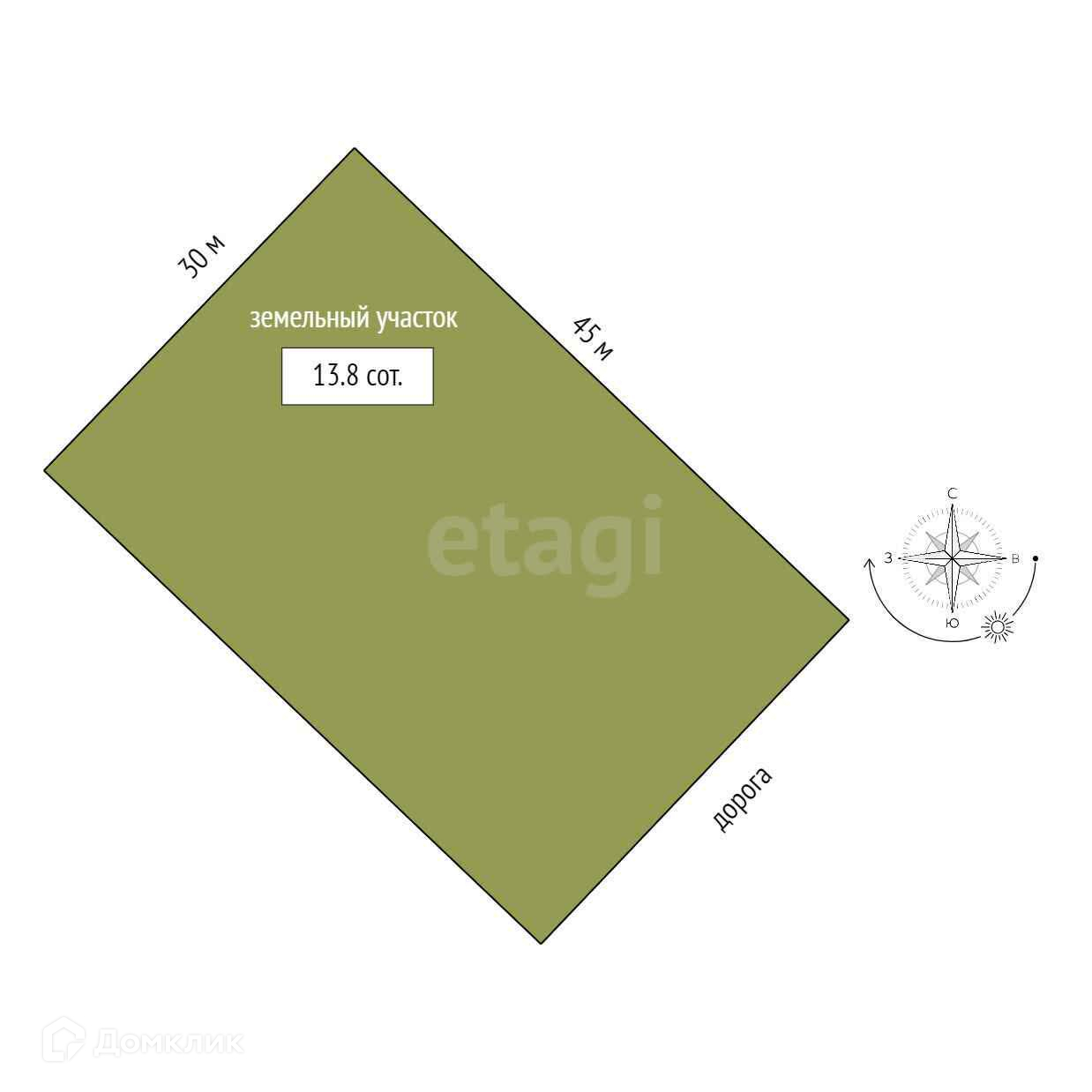 Площадь участка 13.8 сот.