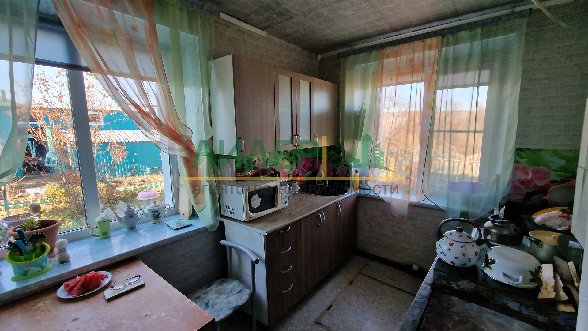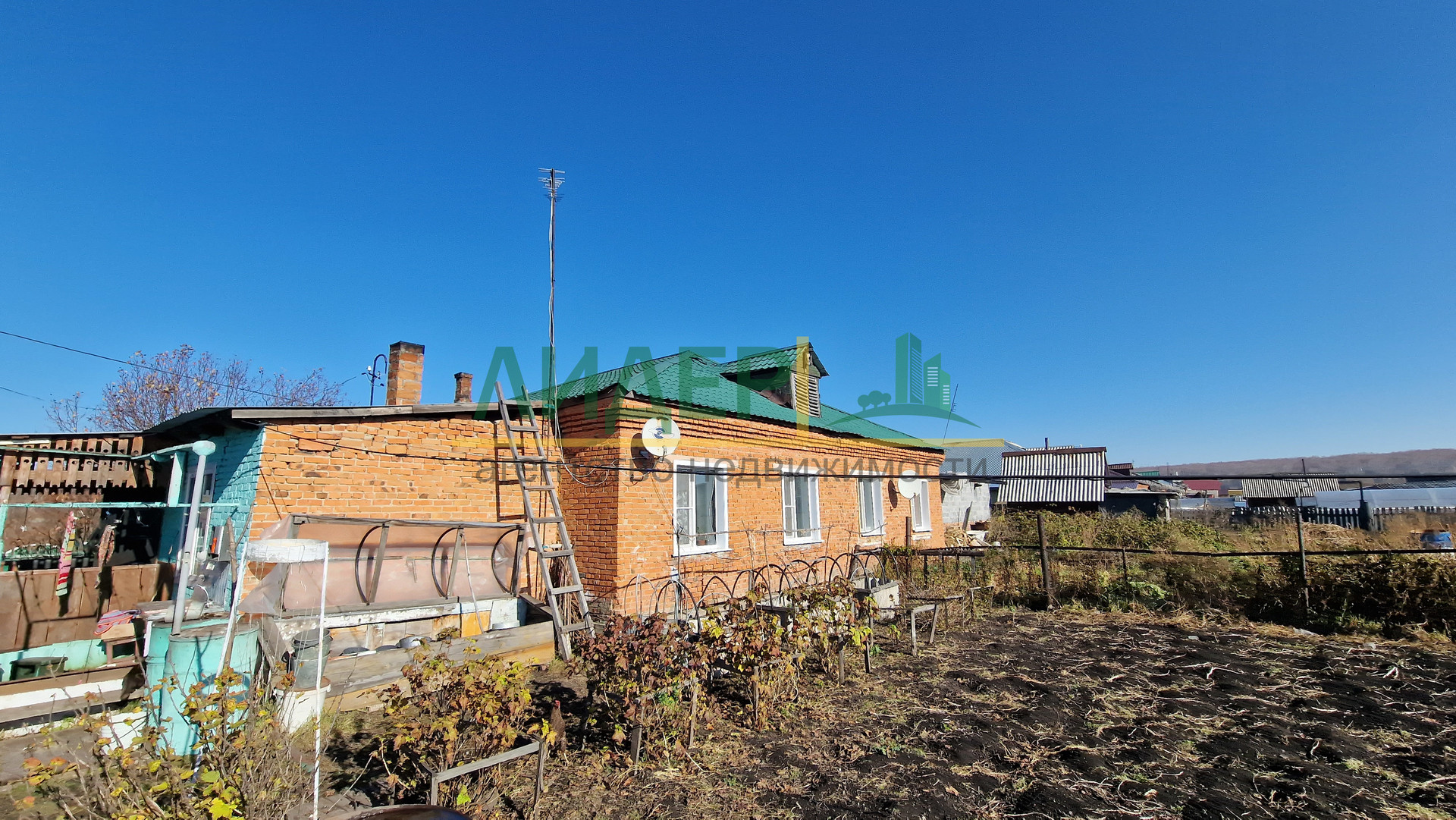 - Одна сторона дома обшита сайдингом, крыша металлочерепица, окна пластиковые ,на полу ламинат, вода и слив в доме. Отопление печное водяное. Имеется летняя кухня под одной крышей с теплицей и парником. Из построек: баня, гараж, есть углярка, беседка, стайка. Земельный участок 8 соток с различными посадками.