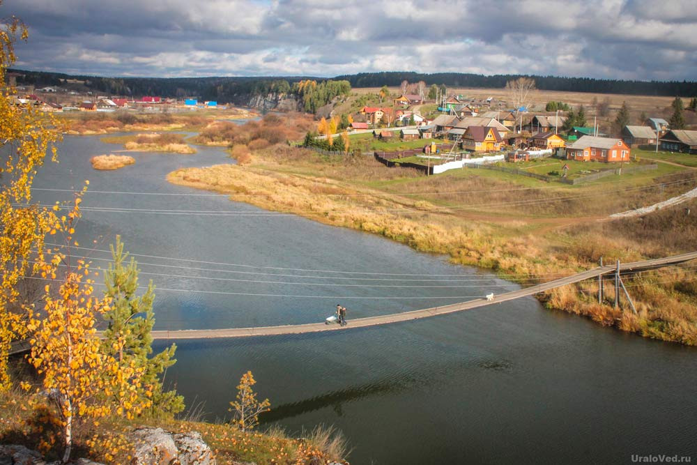 Около Аллеи славы Чусовой у камня Шайтан через реку перекинут навесной мост к правобережной части села. Благодаря ширине моста по нему даже осмеливаются ездить на мотоциклах и легковых автомобилях.