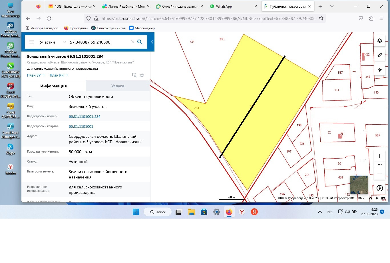 Участок сельхозназначения, 250 сот. на продажу в селе Чусовом