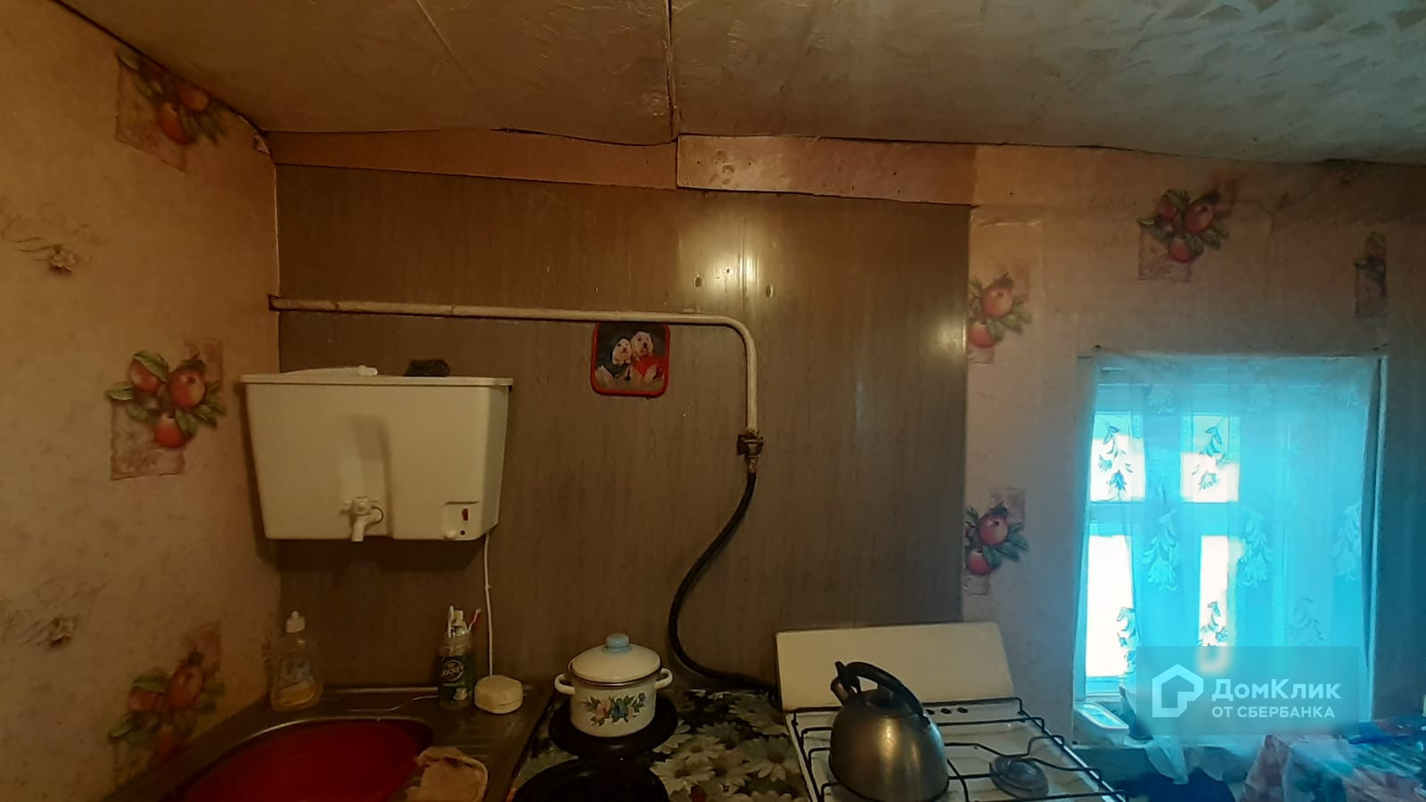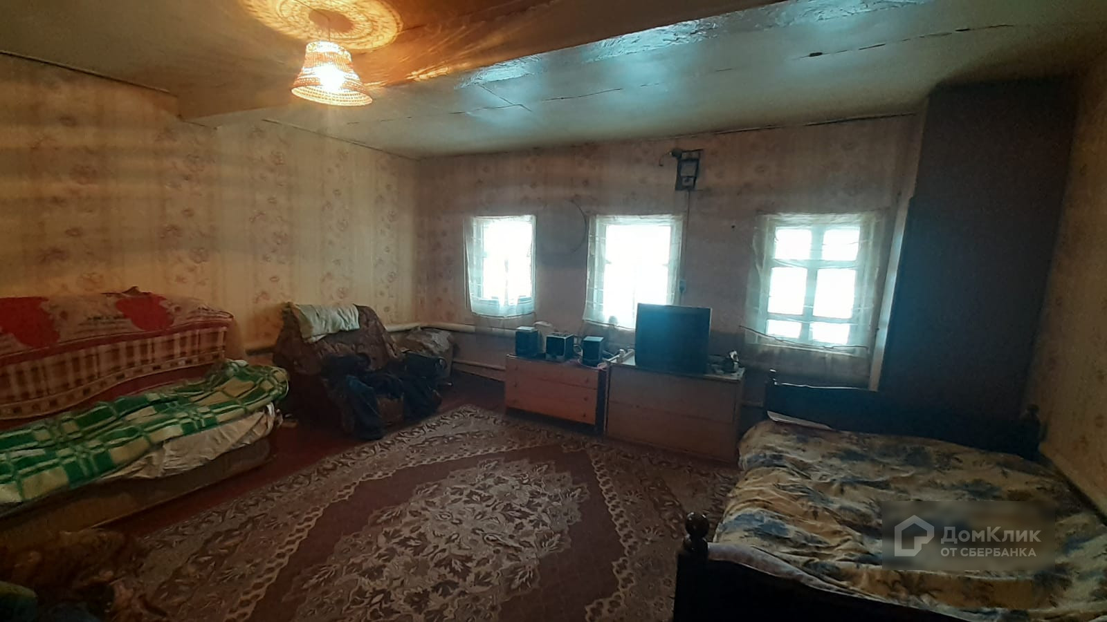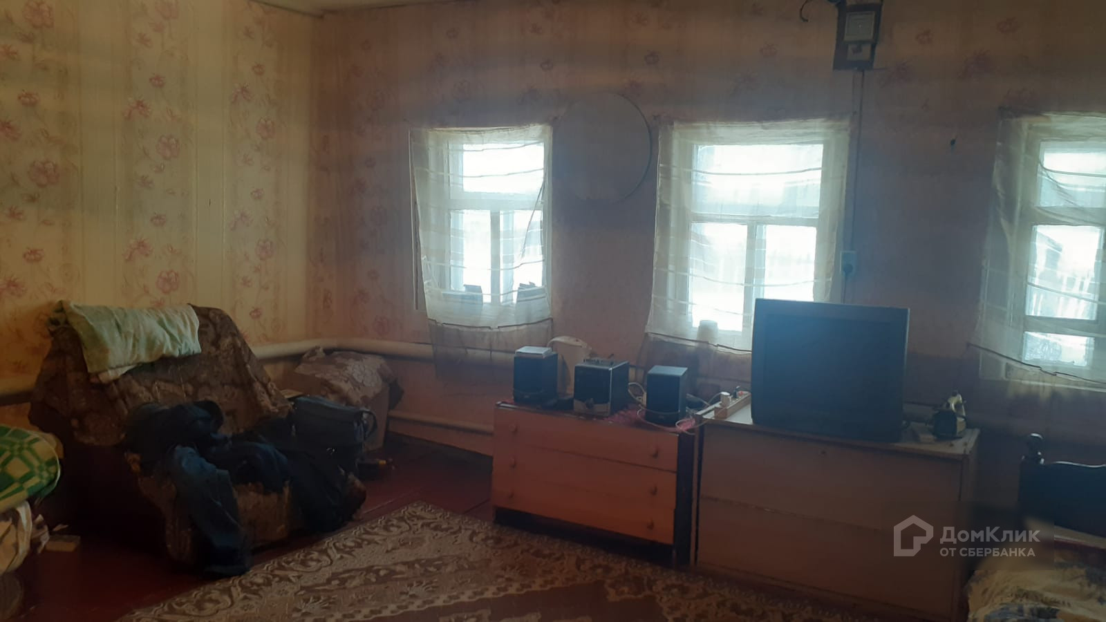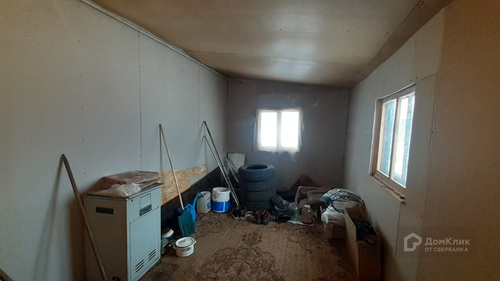 Отделка – снаружи дом покрашен, на полу ОСП, обои на стенах поклеены, на потолке потолочная плитка
