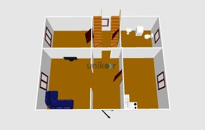 Планировка:  входная веранда (закрытая), прихожая, 3 спальные комнаты, кухня, гостинная,  санузел.