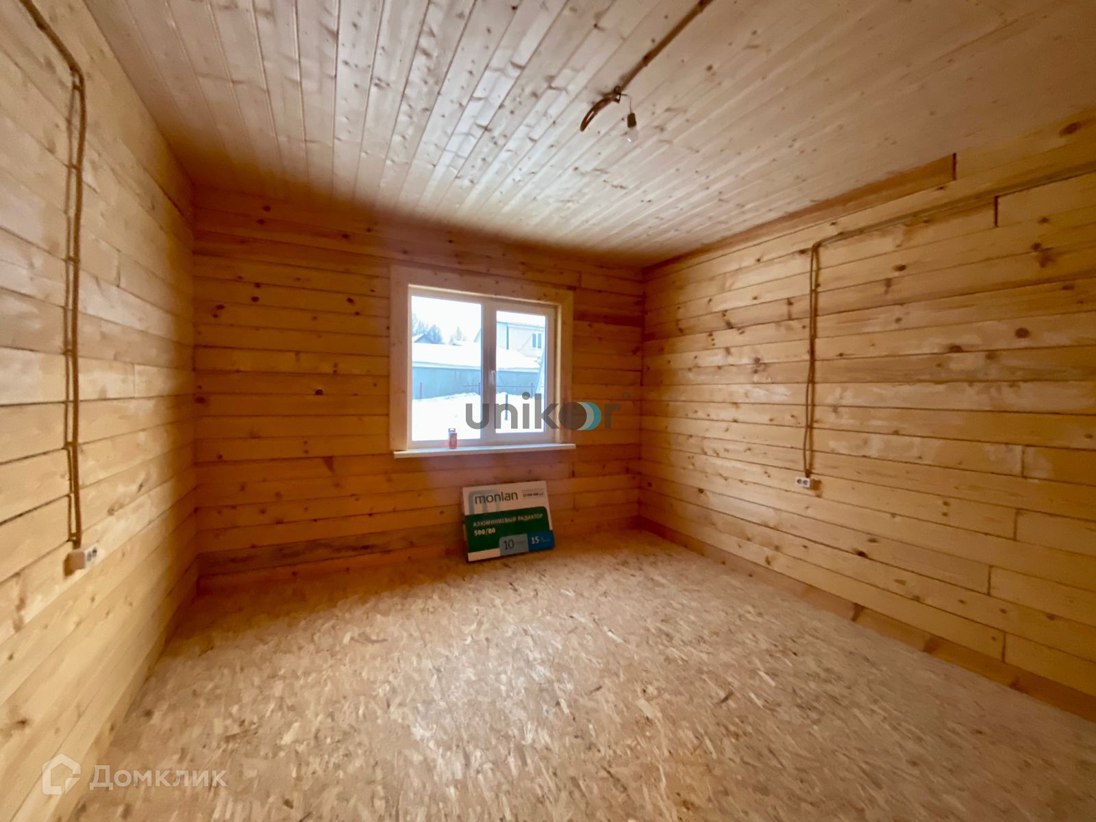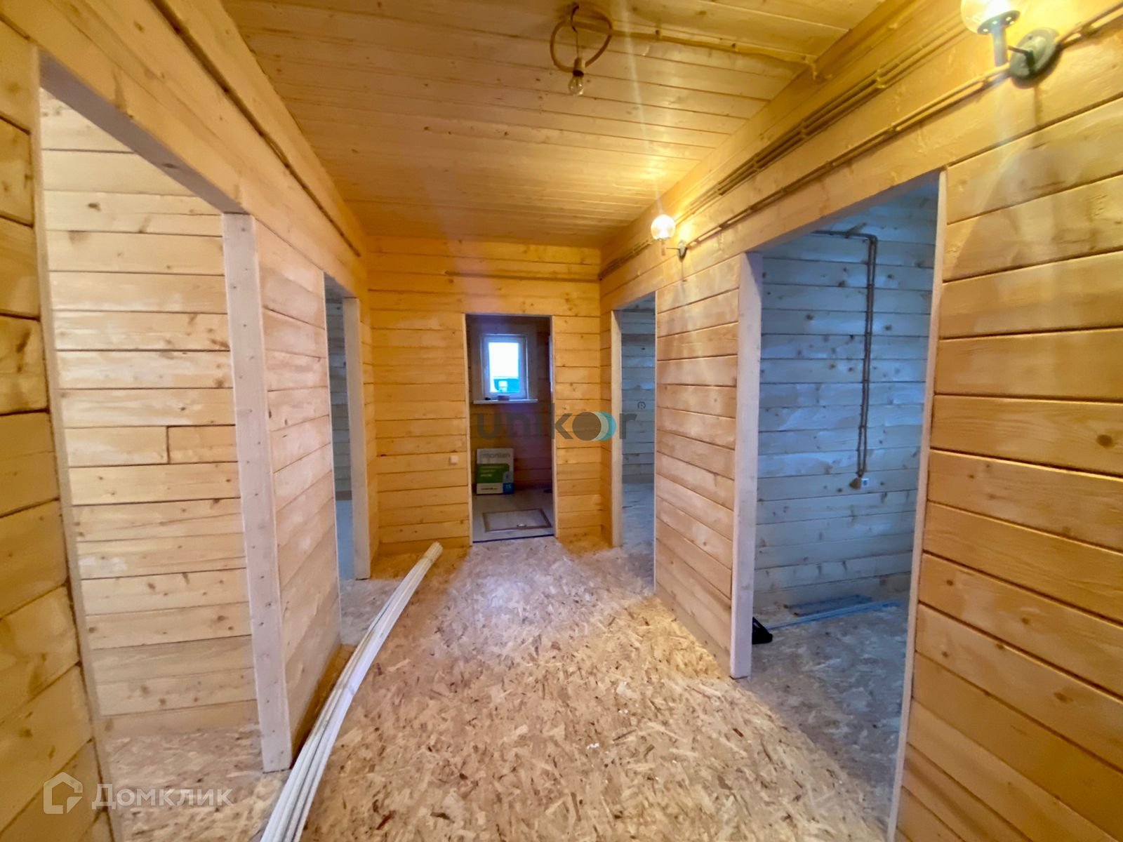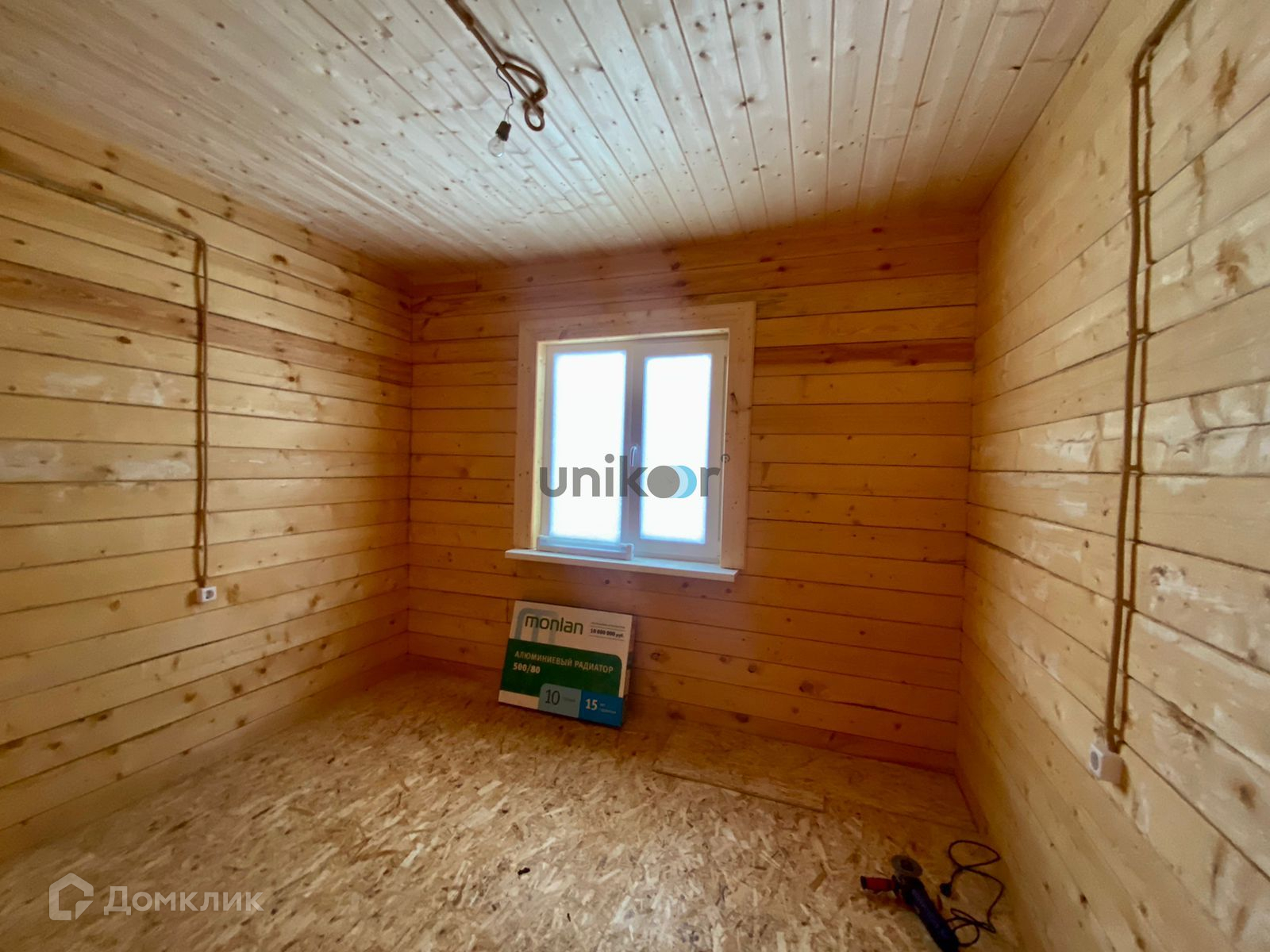 Стены строганный брус, потолок натяжной, на полу OSB .
