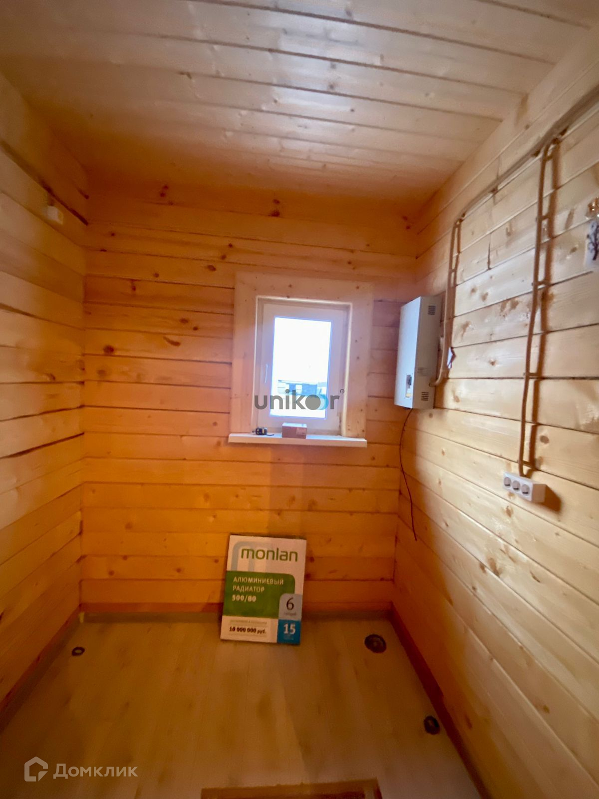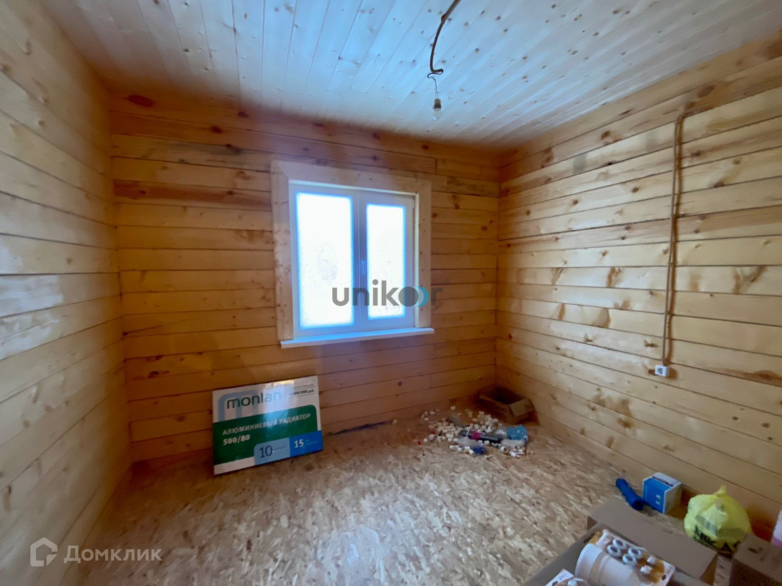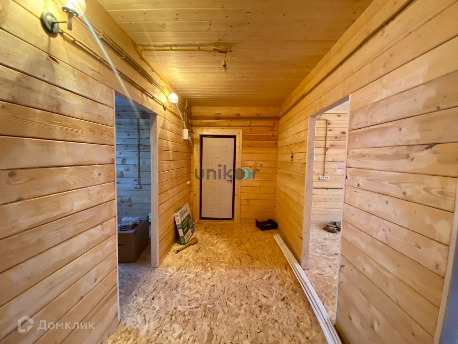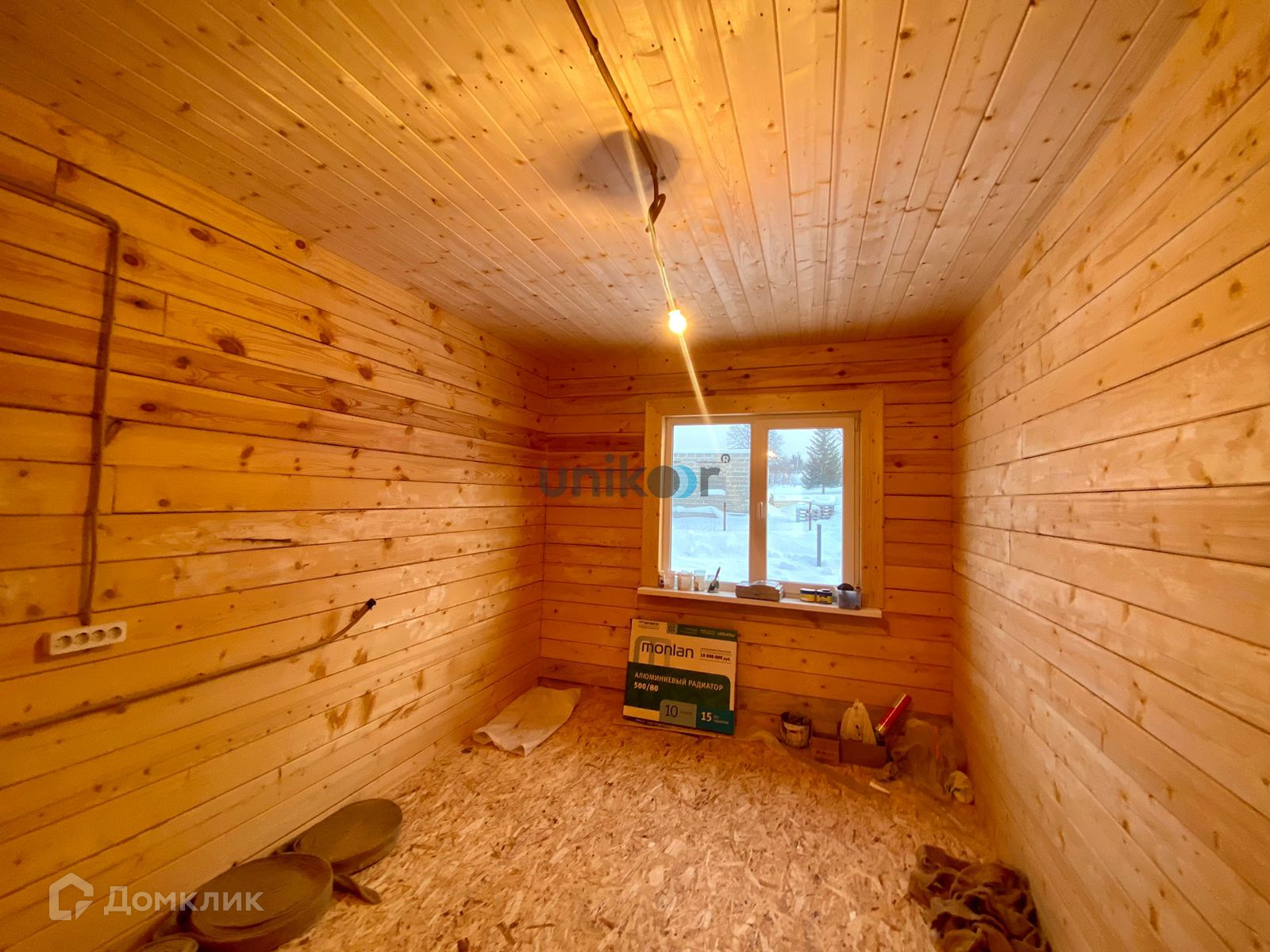 Стены строганный брус, потолок натяжной, на полу OSB .