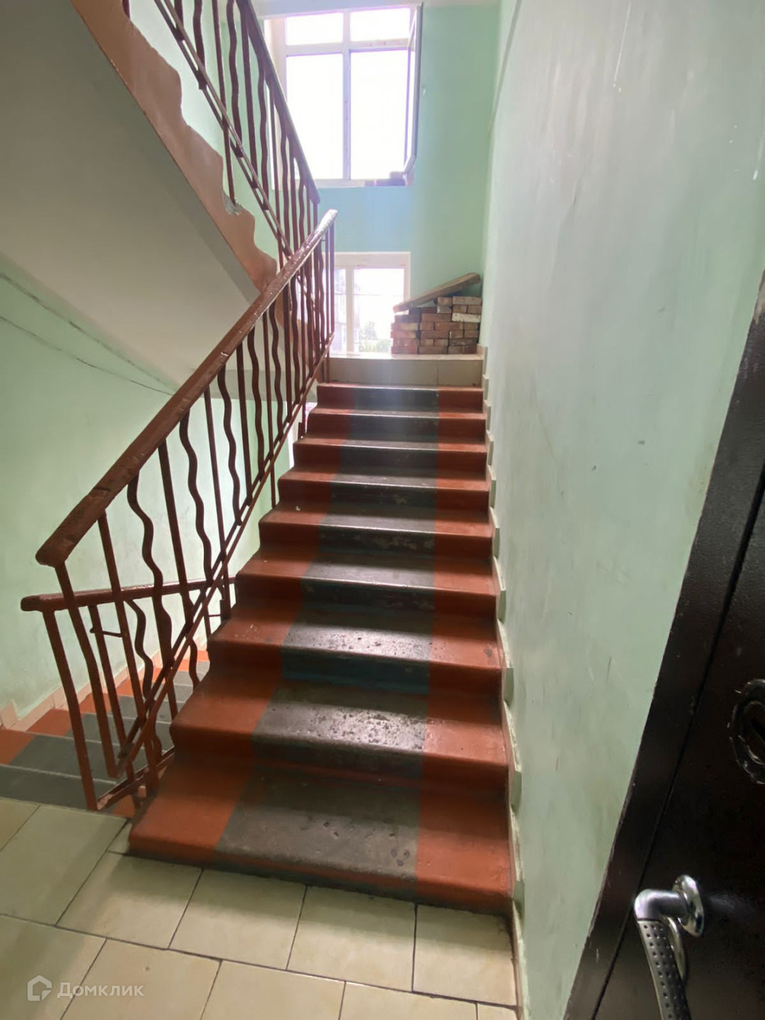 потом скрывается за дом и жара не ощущается, чистый подъезд.