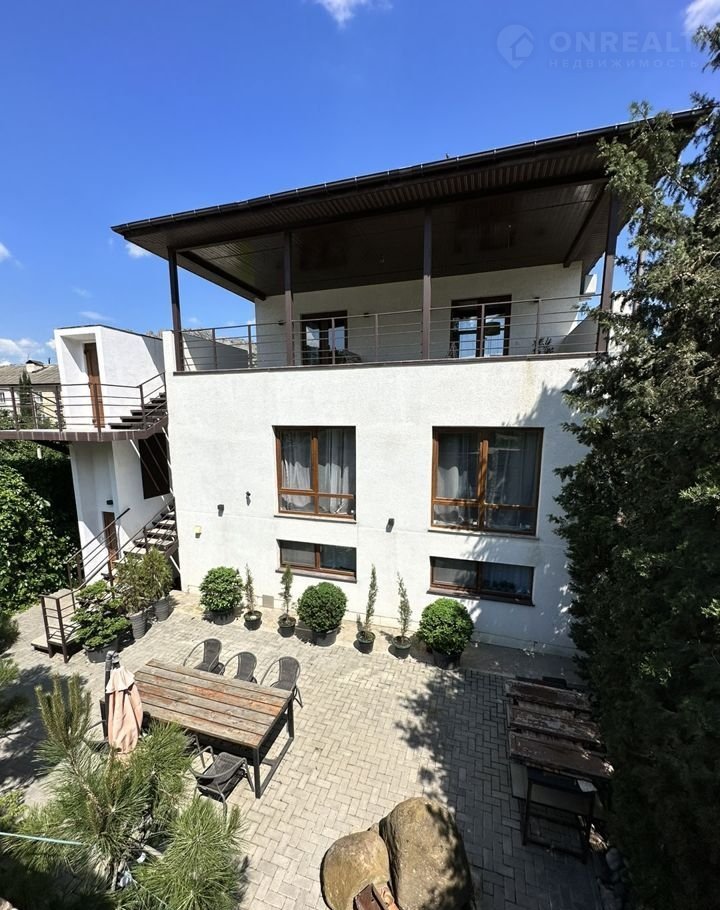 В трёхэтажном доме расположены 2 аппартамента на втором этаже и кухня-столовая плюс терраса на третьем.