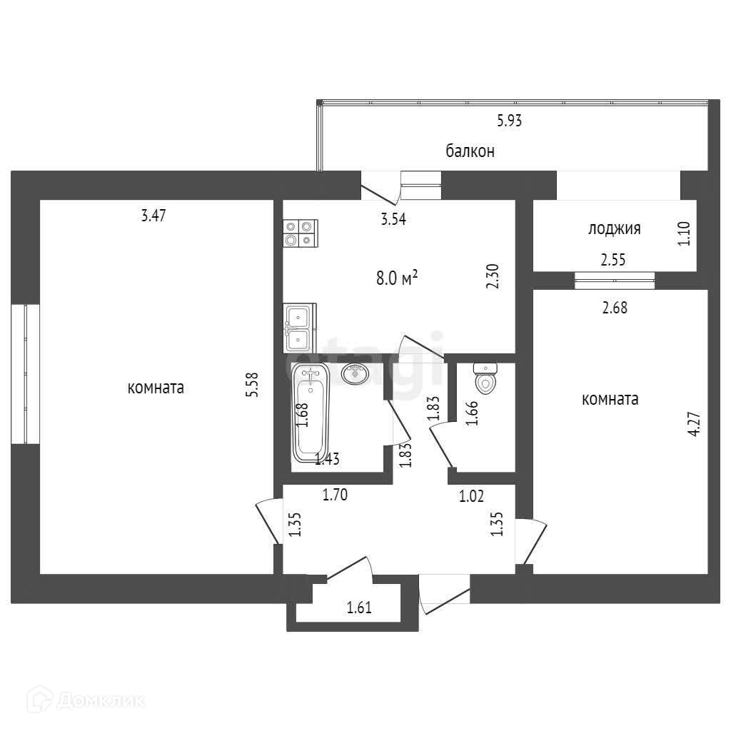 2-комнатная квартира, 50.1 м2, этаж 2 / 5, на продажу в селе Дальнем, село Дальнее, 16